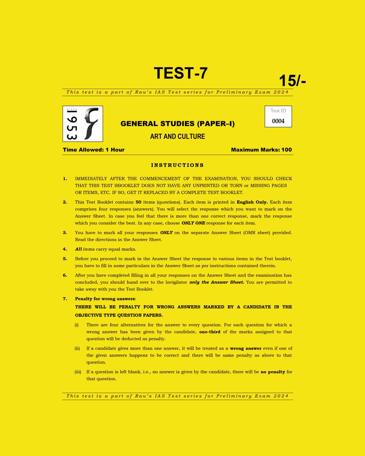 RAU’S IAS 2024 TEST-07 (ART AND CULTURE) ENGLISH MEDIUM (BLACK & WHITE)
