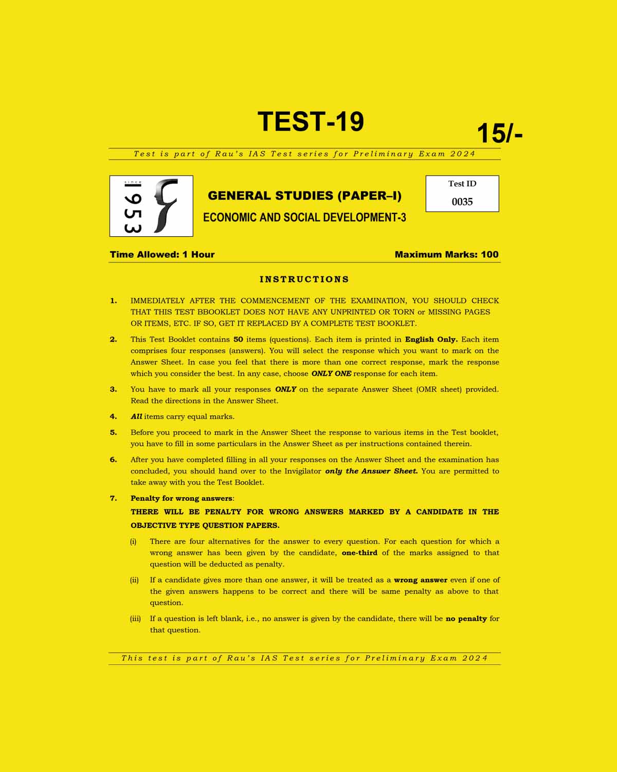 / RAU’S IAS 2024 TEST-19 (ECONOMIC & SOCIAL DEVELOPMENT-III) ENGLISH MEDIUM (BLACK & WHITE)