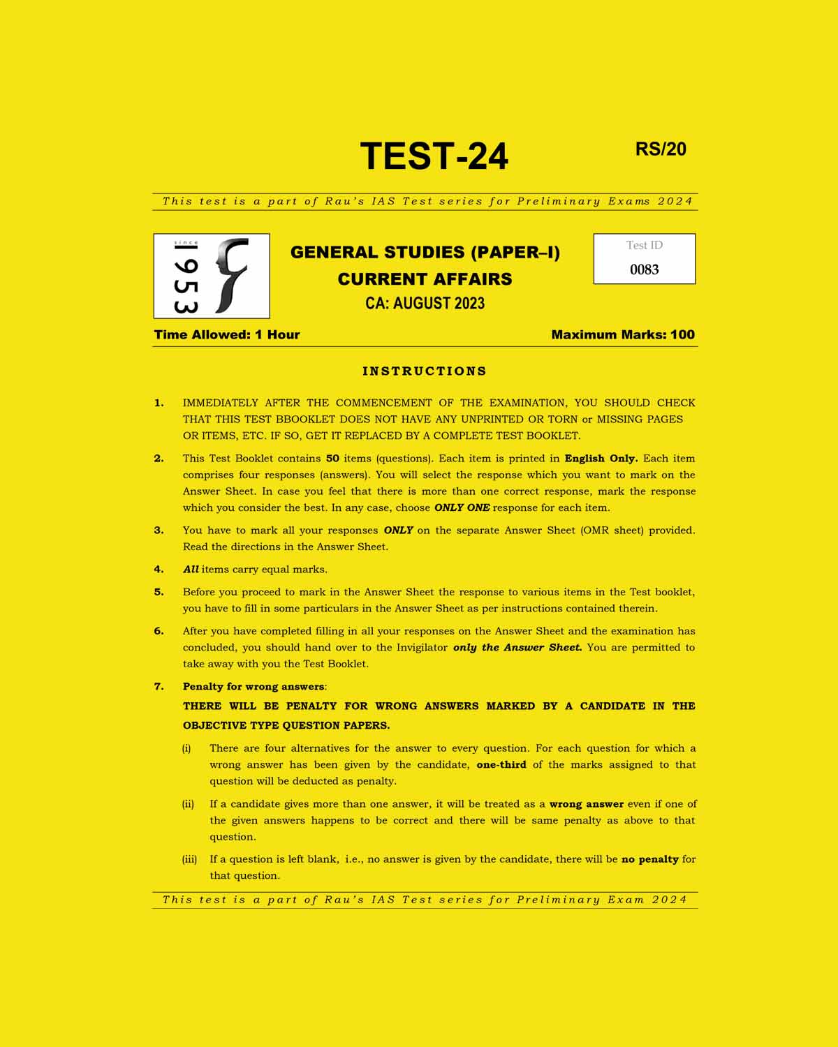 / RAU,S IAS 2024 TEST-24-CURRENTAFFAIRS{AUGUST2023} {ENGLISH} 2024 {BLACK AND WHITE}
