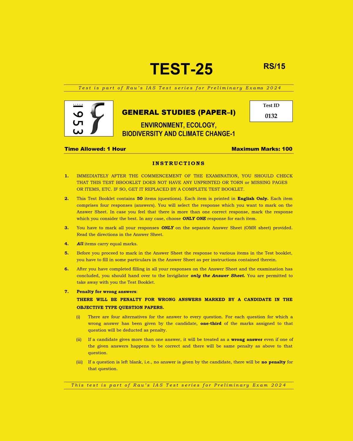 RAU,S IAS 2024 TEST-25 –ENVIROMENT,ECOLOGY ,BIODIVERSITY AND CLIMATE CHANGE-1 {ENGLISH} 2024 {BLACK AND WHITE} quantity