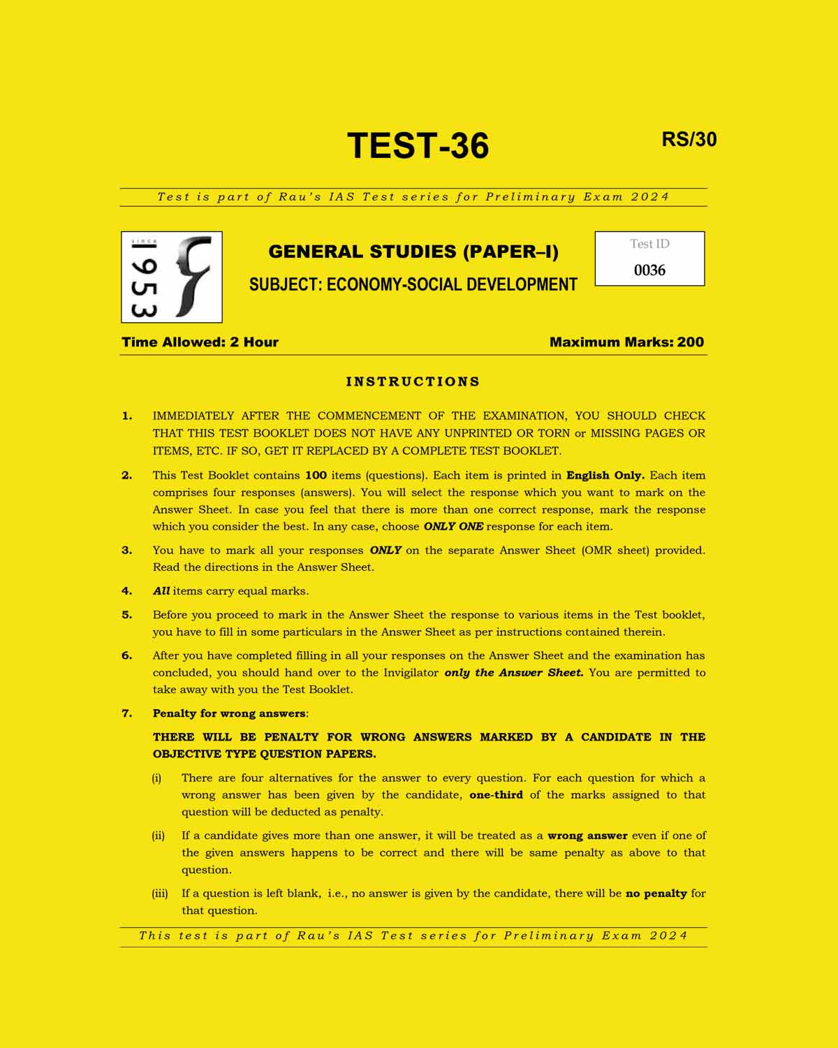 RAUS IAS 2024 TEST-36 2024-ECONOMY&SOCIAL DEVELOPMENT FINAL {ENGLISH} {BLACK AND WHITE}