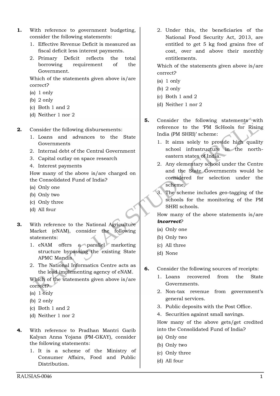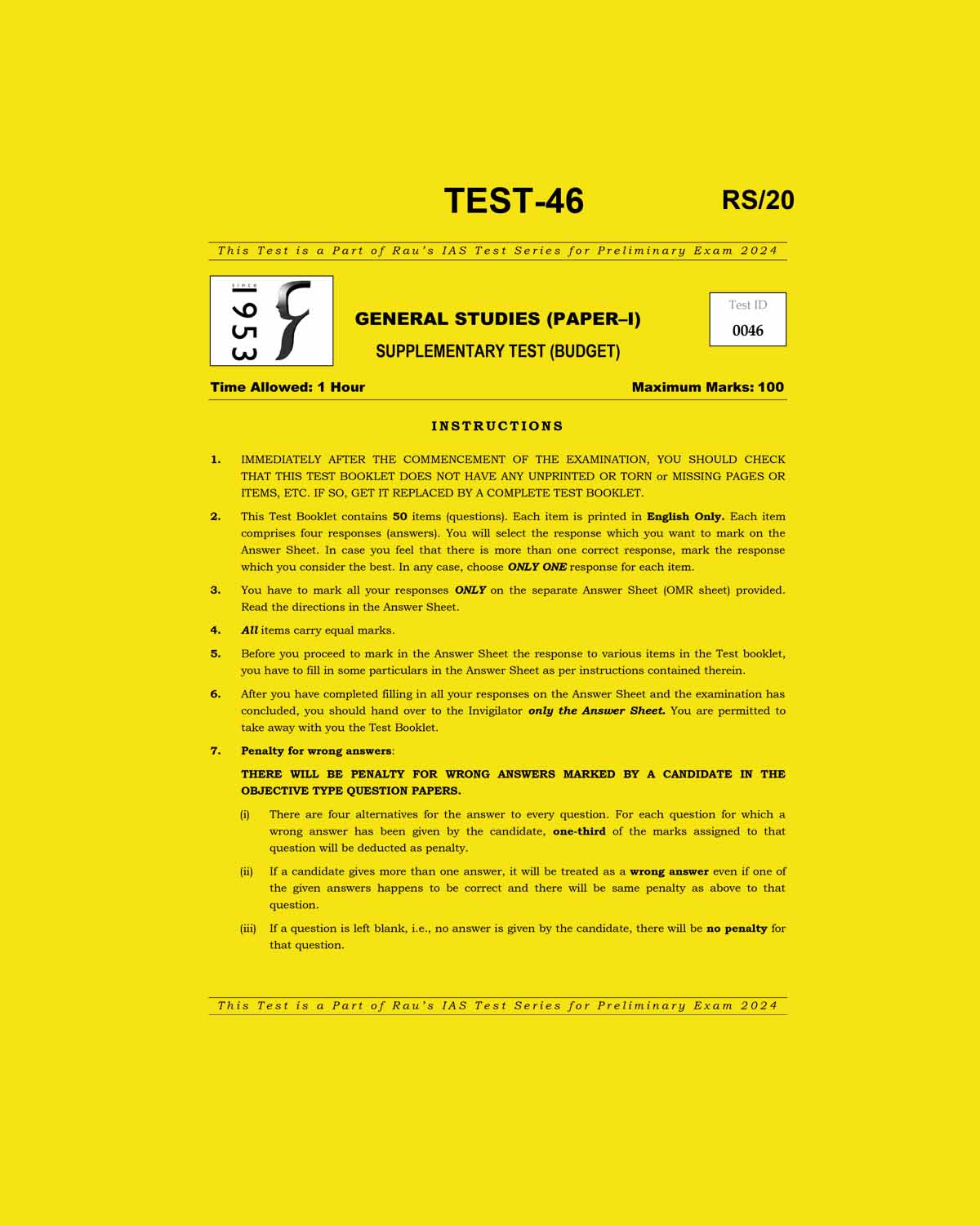 / RAU’S IAS 2024 TEST-46 2024- BUDGET FINAL FINAL {ENGLISH} {BLACK AND WHITE}