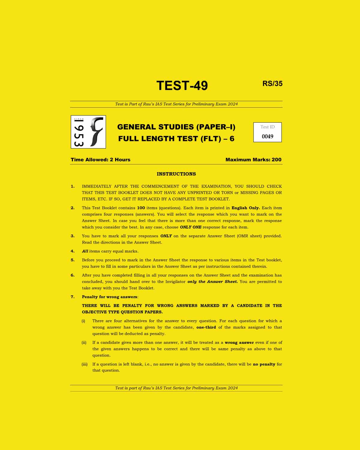 / RAU’S IAS 2024 TEST-49 2024-FULL LENGTH TEST-6 FINAL {ENGLISH} {BLACK AND WHITE}