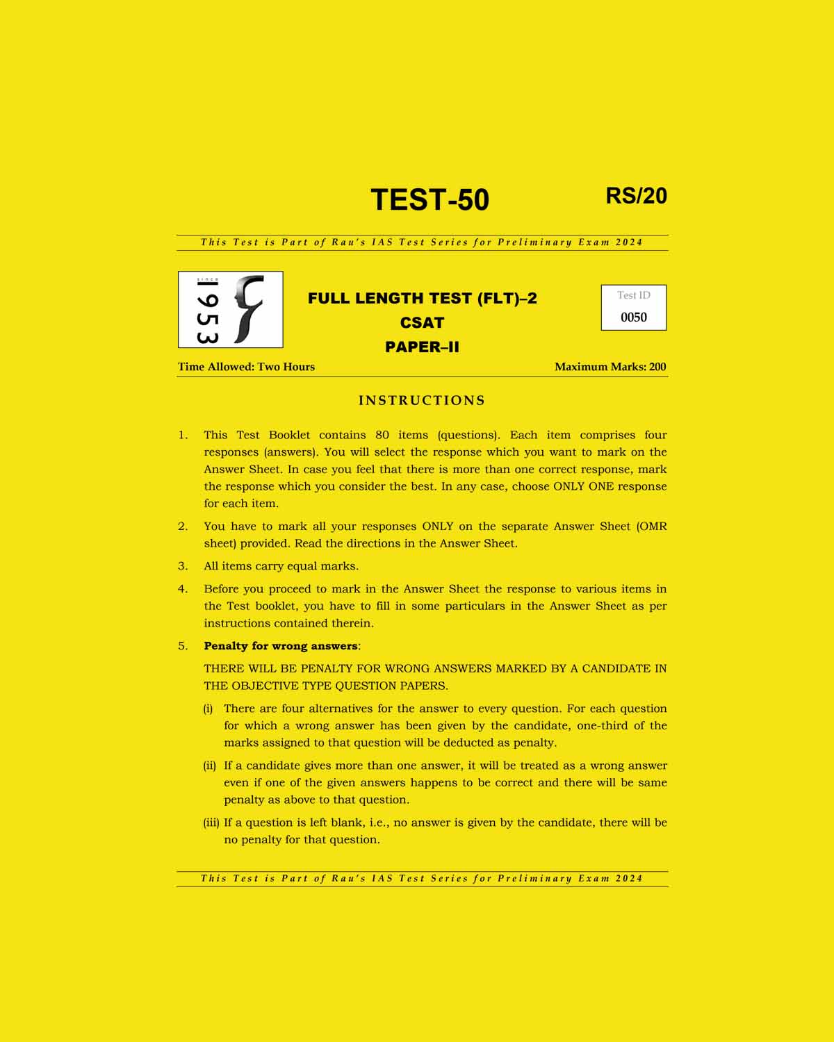 RAU'S IAS 2024 TEST-50 2024- CSAT FULL LENGTH TEST-2 FINAL {ENGLISH} {BLACK AND WHITE} quantity