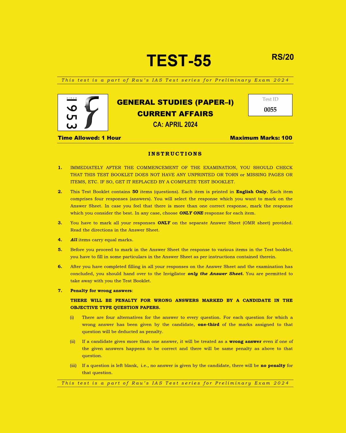 / RAU’S IAS 2024 TEST-55 2024-CA-APRIL 2024 FINAL {ENGLISH} {BLACK AND WHITE}