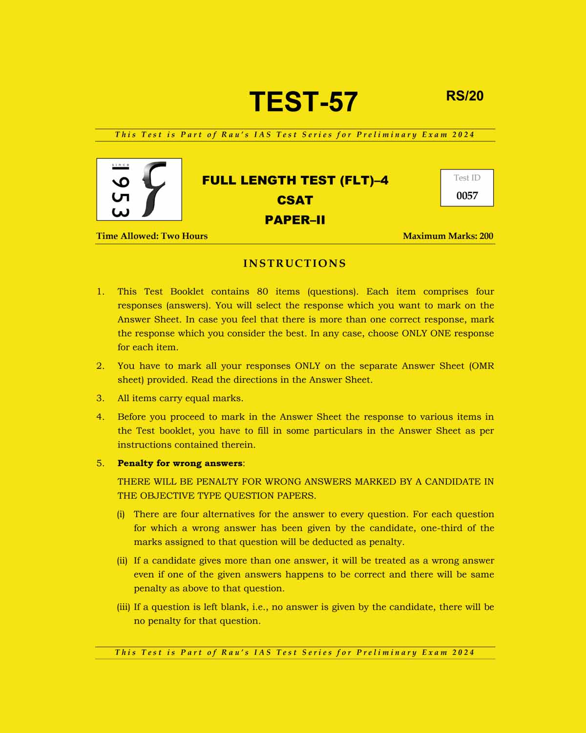 RAU’S IAS 2024 TEST-57 2024- CSAT FULL LENGTH TEST-4 FINAL {ENGLISH} {BLACK AND WHITE}