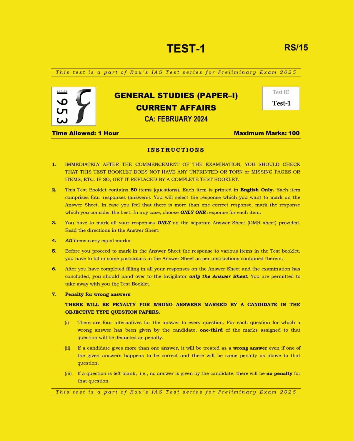 RAU,IAS 2025 TEST-35 GS FULL LENGTH TEST-1 2025 FINAL (ENGLISH) {BLACK AND WHITE}