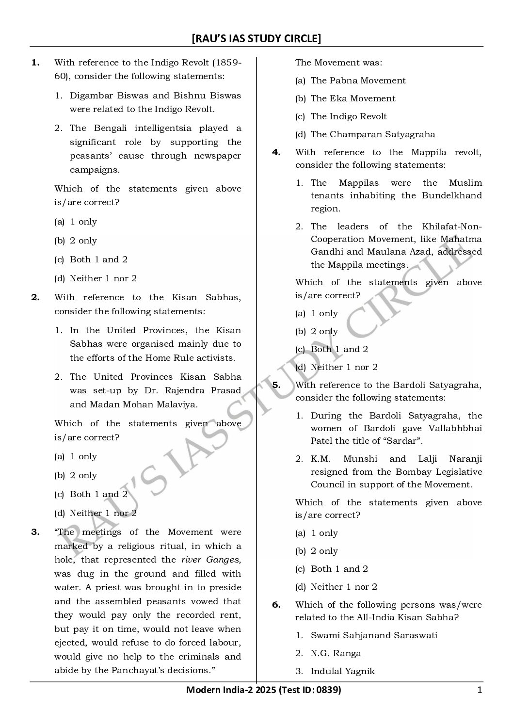 RAU,S IAS 2025 TEST-10 MODERN INDIA-2 2025 FINAL (ENGLISH) {BLACK AND WHITE}