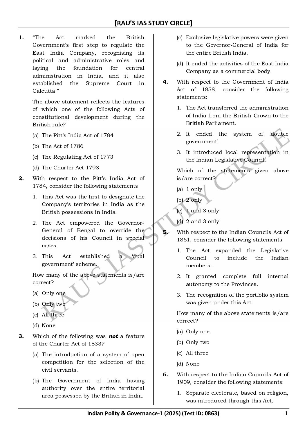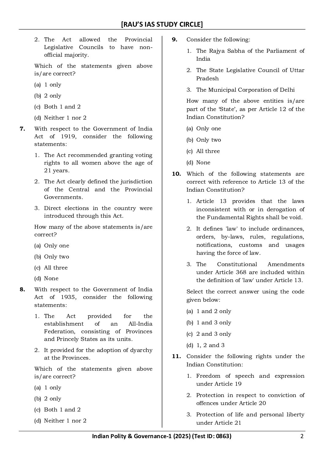 / RAU,S IAS 2025 TEST-12 INDIAN POLITY & GOVERNANCE-1 2025 FINAL (ENGLISH) {BLACK AND WHITE}