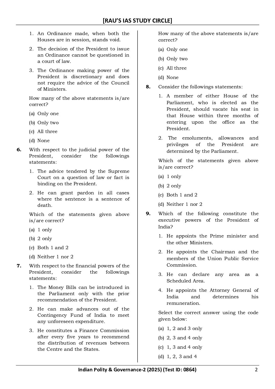 RAU,S IAS 2025 TEST-13 INDIAN POLITY & GOVERNANCE-2 2025 FINAL (ENGLISH) {BLACK AND WHITE}