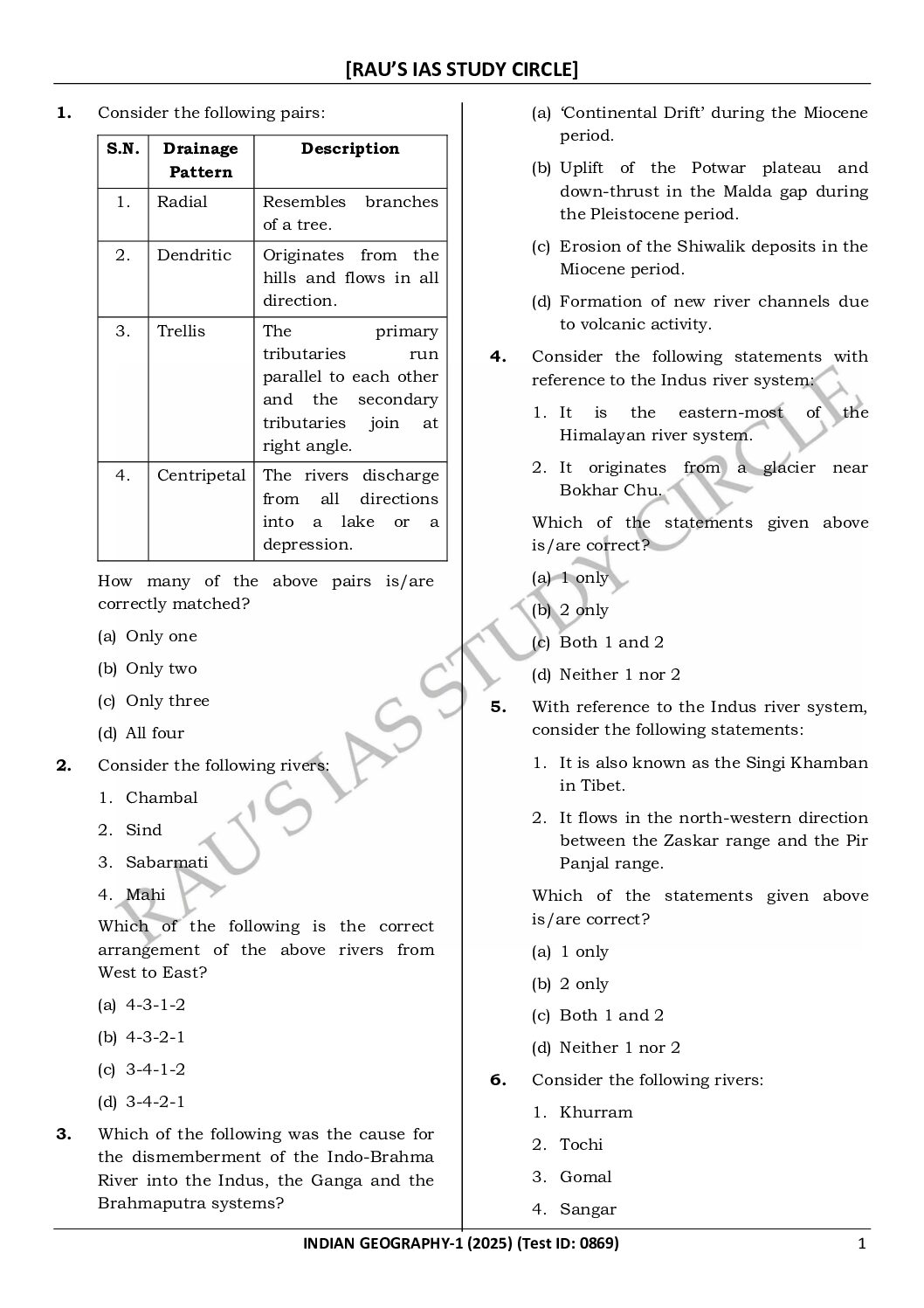 RAU,S IAS 2025 TEST-19 INDIAN GEOGRAPHY-1 2025 FINAL (ENGLISH) {BLACK AND WHITE}