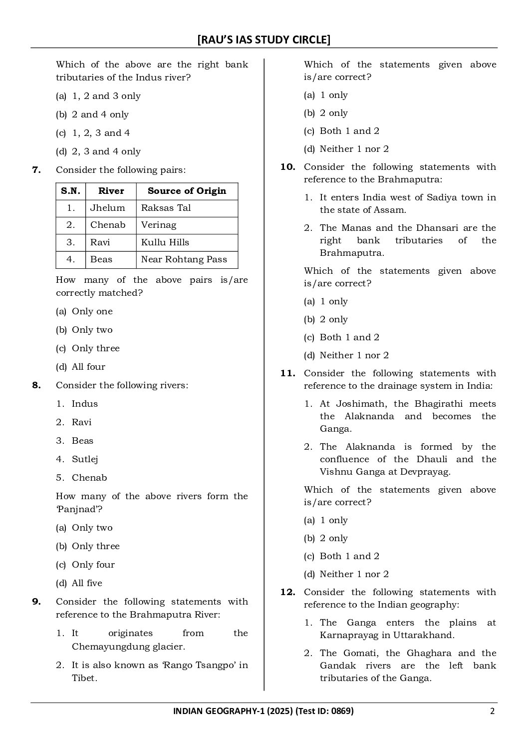 / RAU,S IAS 2025 TEST-19 INDIAN GEOGRAPHY-1 2025 FINAL (ENGLISH) {BLACK AND WHITE}