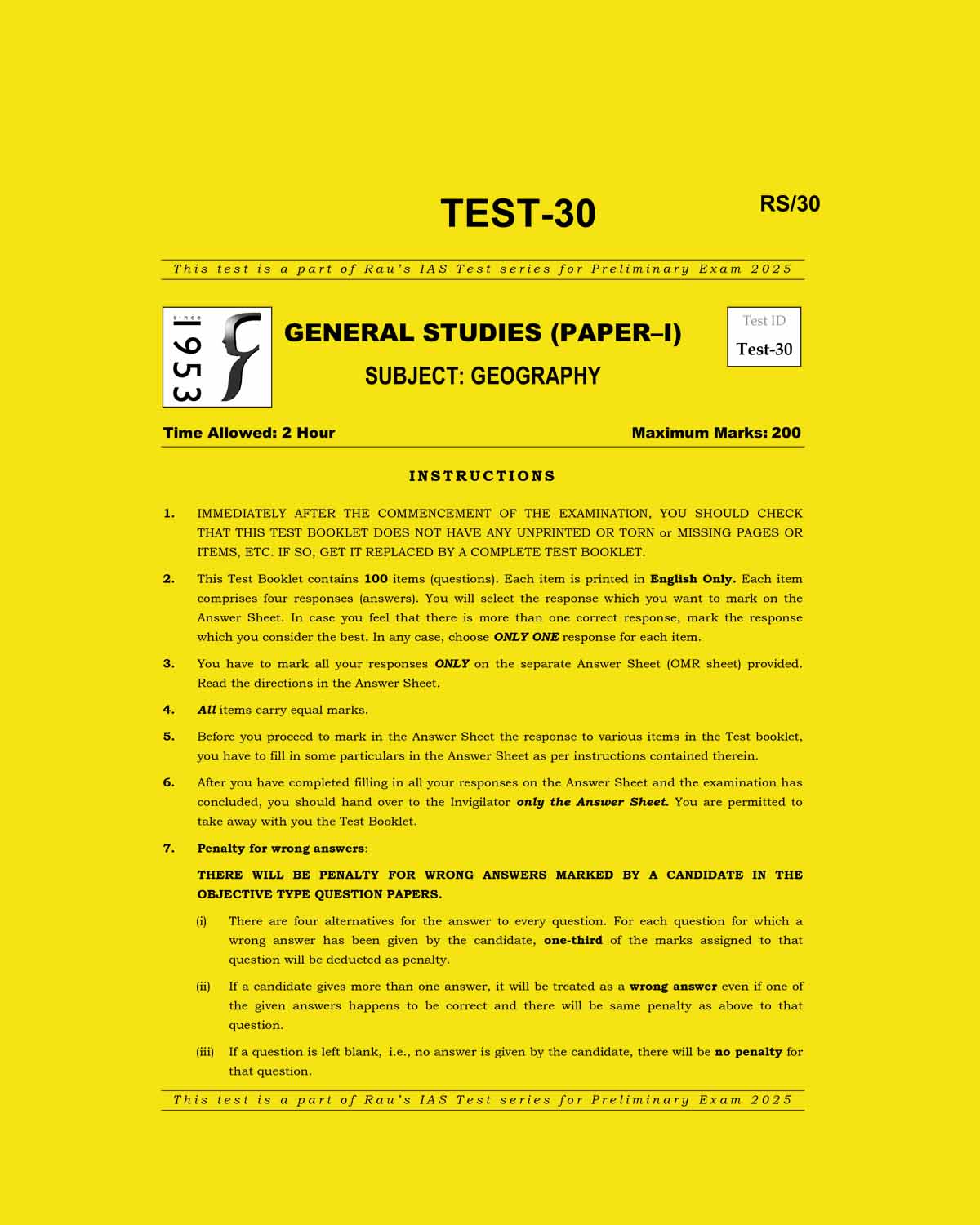 / RAU,S IAS 2025 TEST-30 GEOGRAPHY 2025 FINAL (ENGLISH) {BLACK AND WHITE}