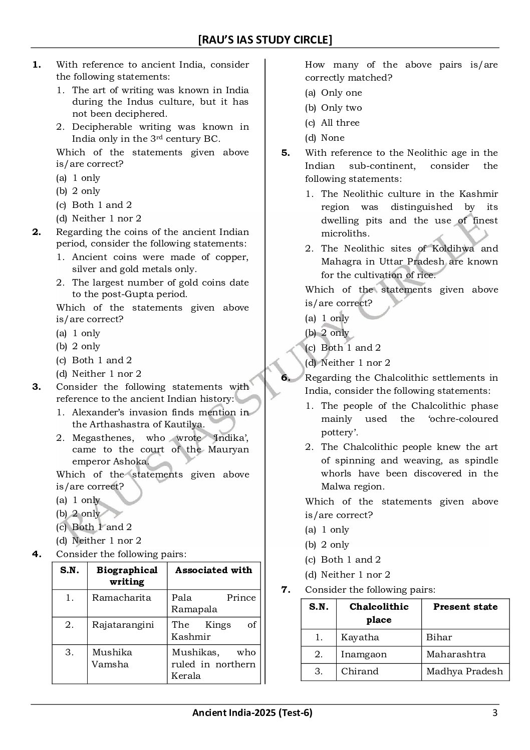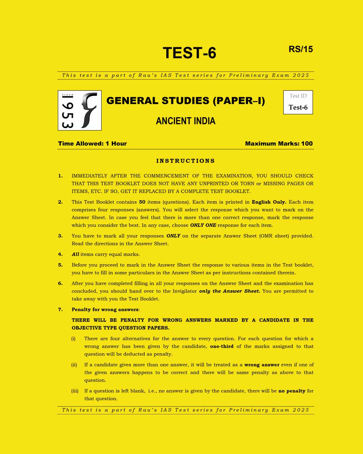 RAU,S IAS 2025 TEST-6 ANCIENT INDIA 2025 FINAL (ENGLISH) {BLACK AND WHITE}