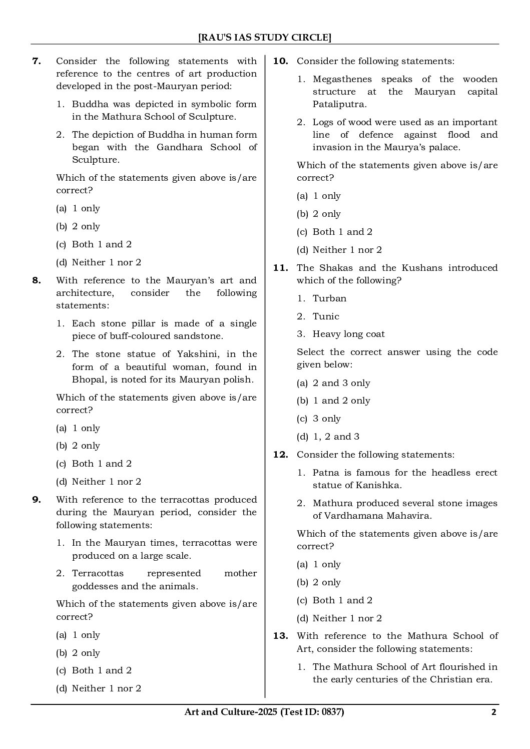 / RAU,S IAS 2025 TEST-8 ART AND CULTURE 2025 FINAL (ENGLISH) {BLACK AND WHITE}