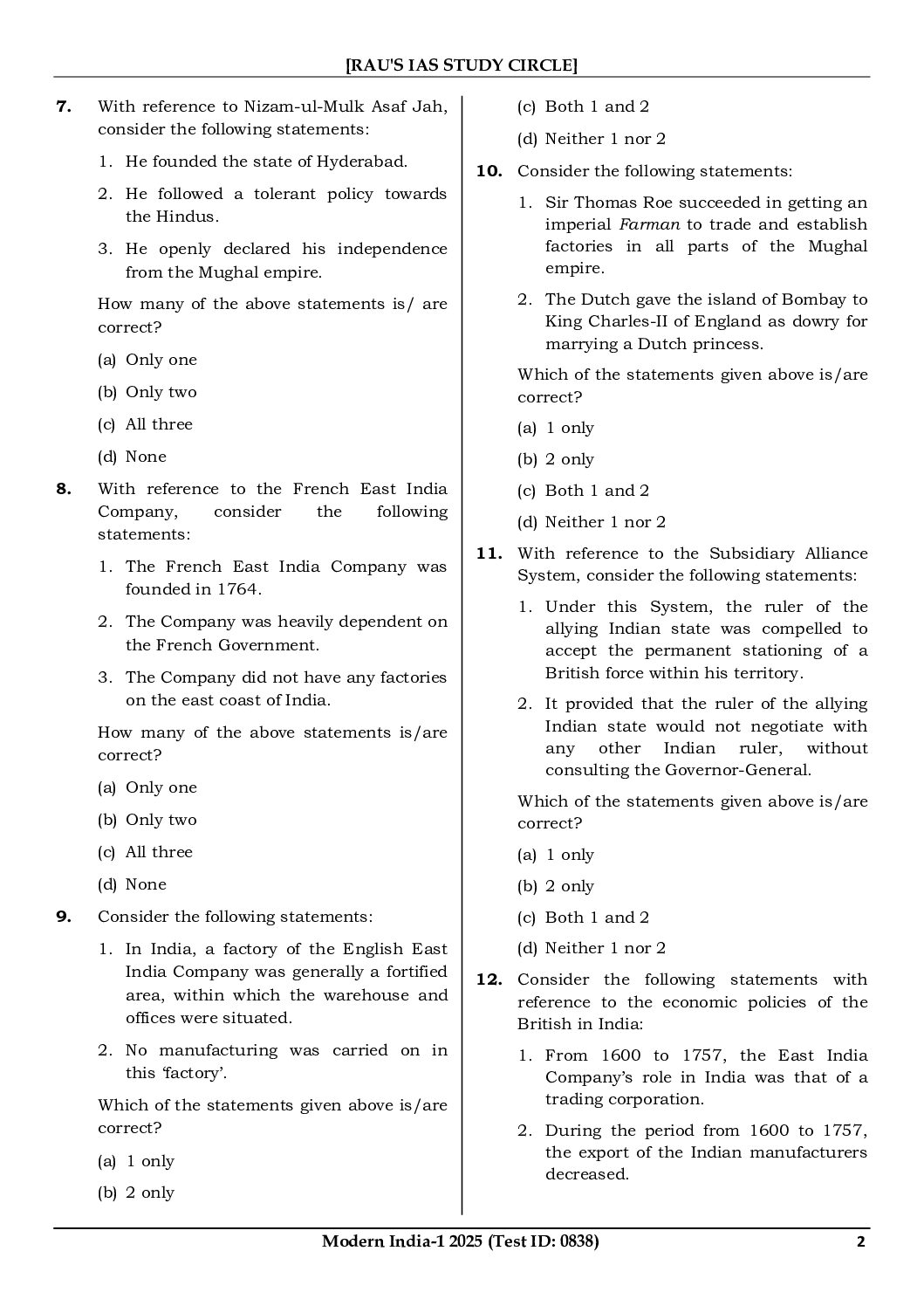 RAU,S IAS 2025 TEST-9 MODERN INDIA-1 2025 FINAL (ENGLISH) {BLACK AND WHITE}