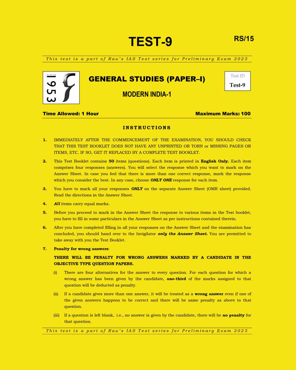 / RAU,S IAS 2025 TEST-9 MODERN INDIA-1 2025 FINAL (ENGLISH) {BLACK AND WHITE}
