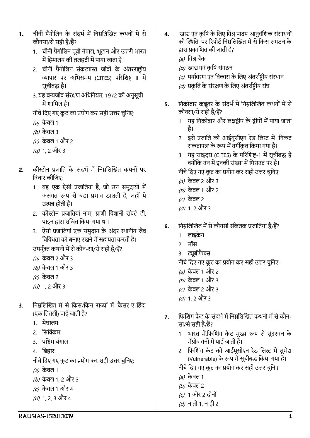 / RAU’S IAS ENGLISH & HINDI ENVIRONMENT, ECOLOGY & BIODIVERSITY – 4 TOPIC TEST – 27 – PRE – 2020