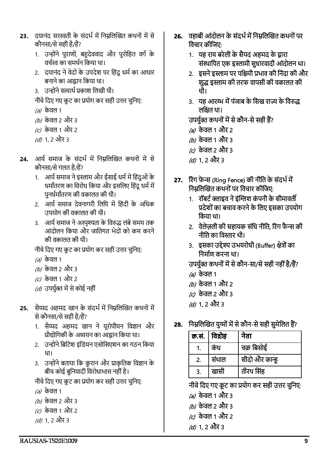 RAU’S IAS ENGLISH & HINDI MODERN INDIA – 1 TOPIC TEST – 5 – PRE – 2020