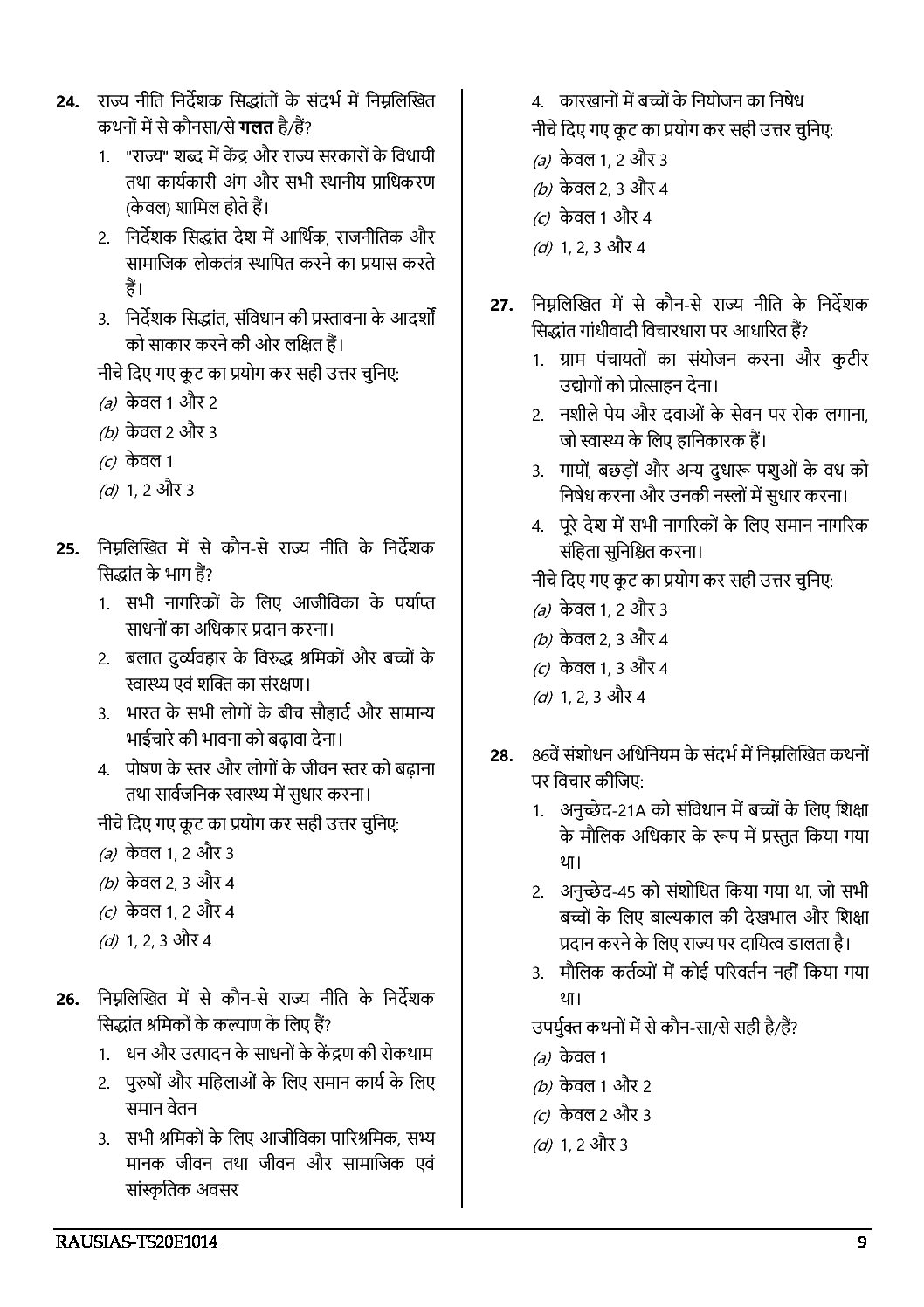 / RAU’S IAS ENGLISH & HINDI POLITY – 2 TOPIC TEST – 9 – PRE – 2020