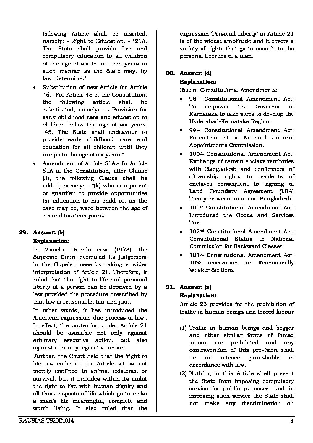 RAU’S IAS ENGLISH & HINDI POLITY – 2 TOPIC TEST – 9 – PRE – 2020
