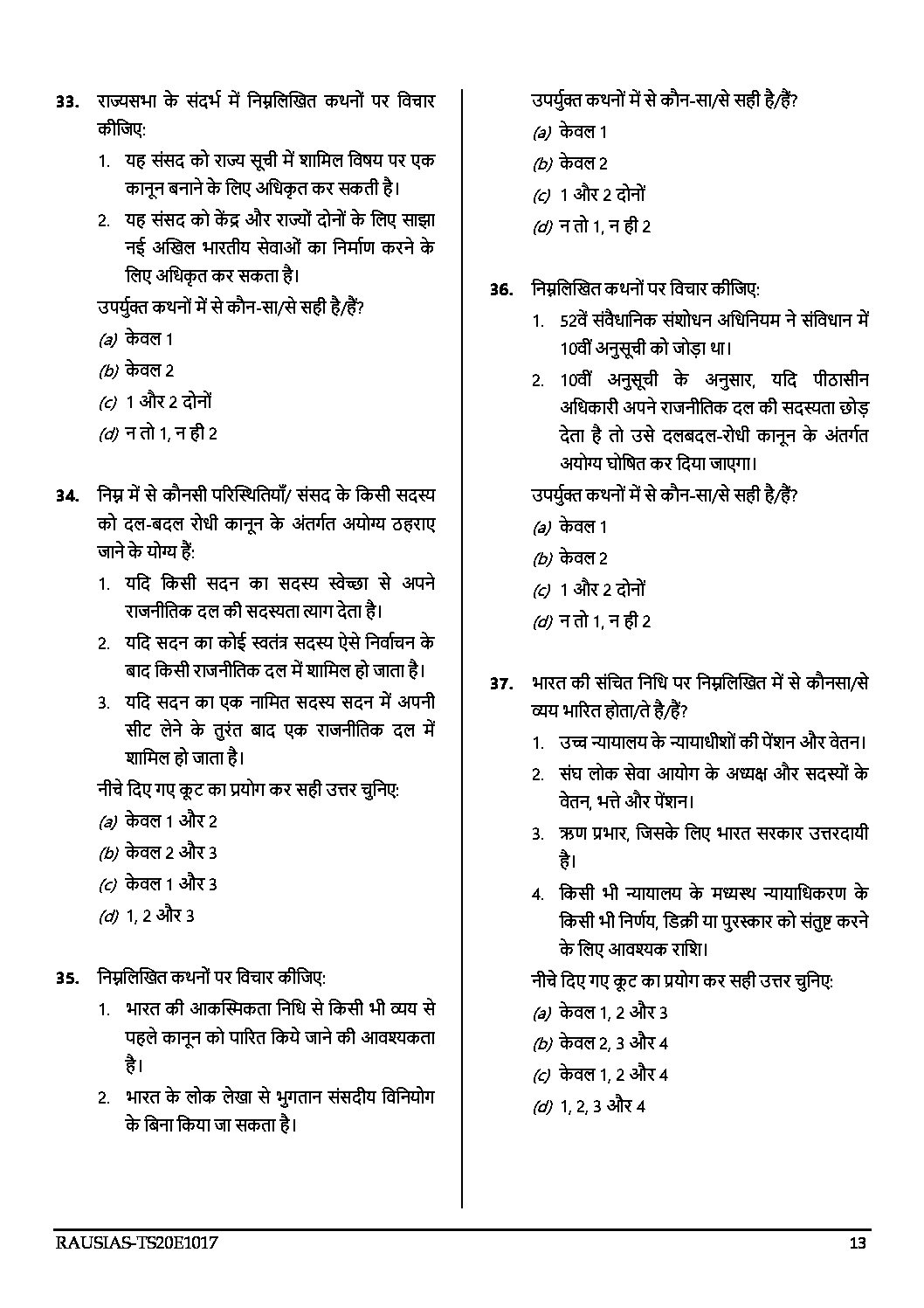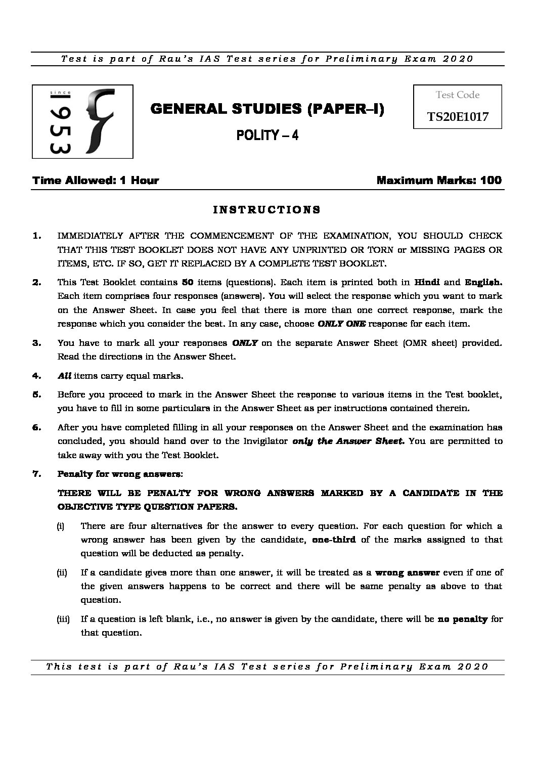 / RAU’S IAS ENGLISH & HINDI POLITY – 4 TOPIC TEST – 11 – PRE – 2020
