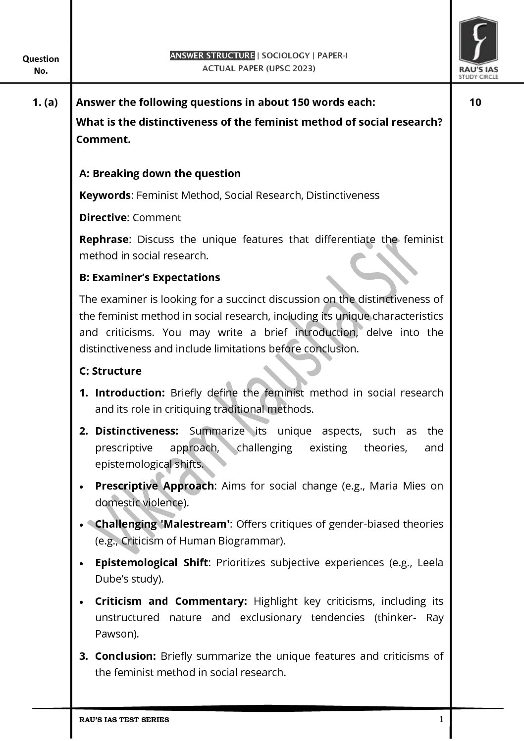 / RAU,S IAS SOCIOLOGY OPTIONAL PYQ SOLVED 2023 FINAL {ENGLISH} {BLACK AND WHITE}