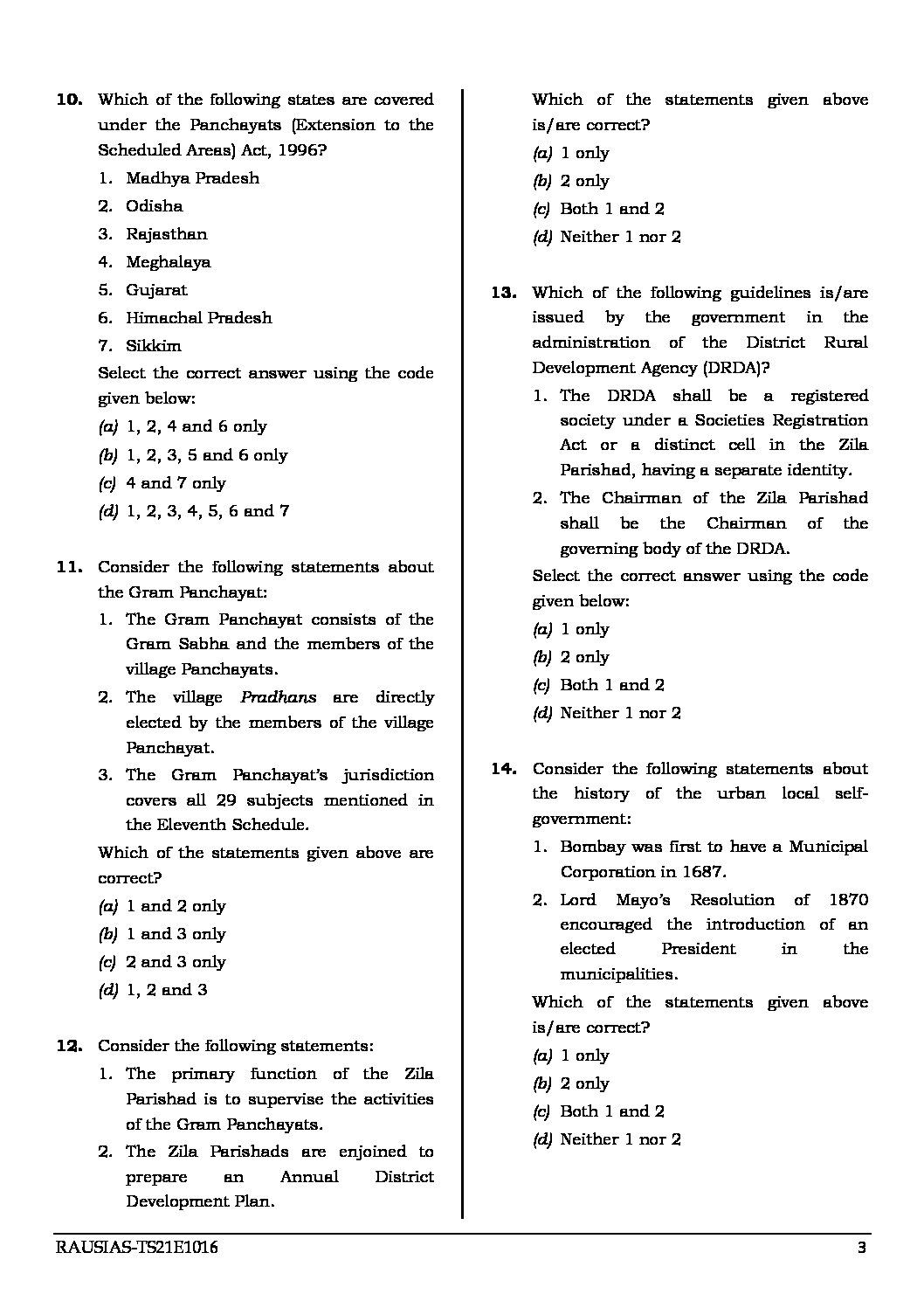 / RAU’S IAS TEST SERIES POLITY – 4 TOPIC TEST – 16