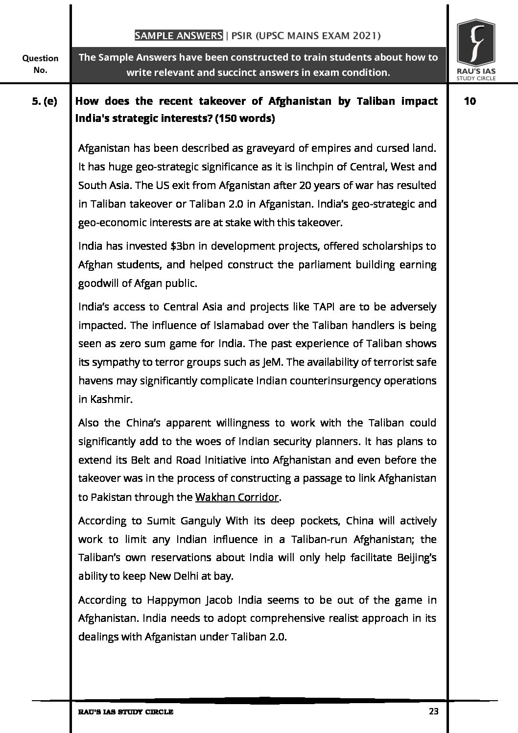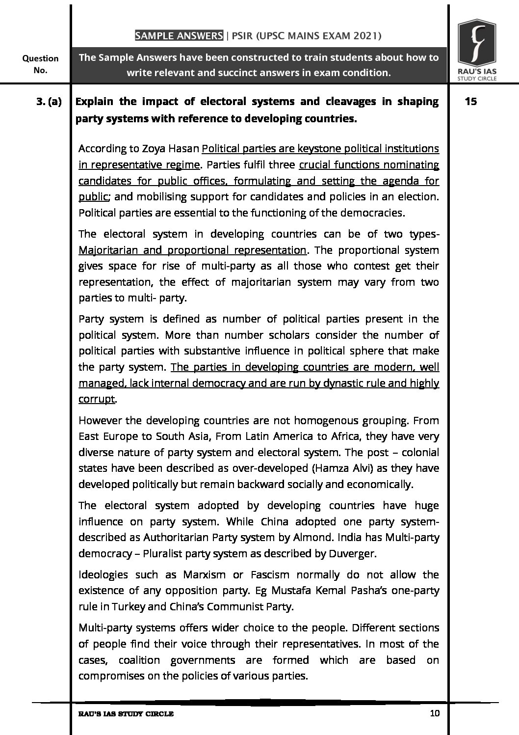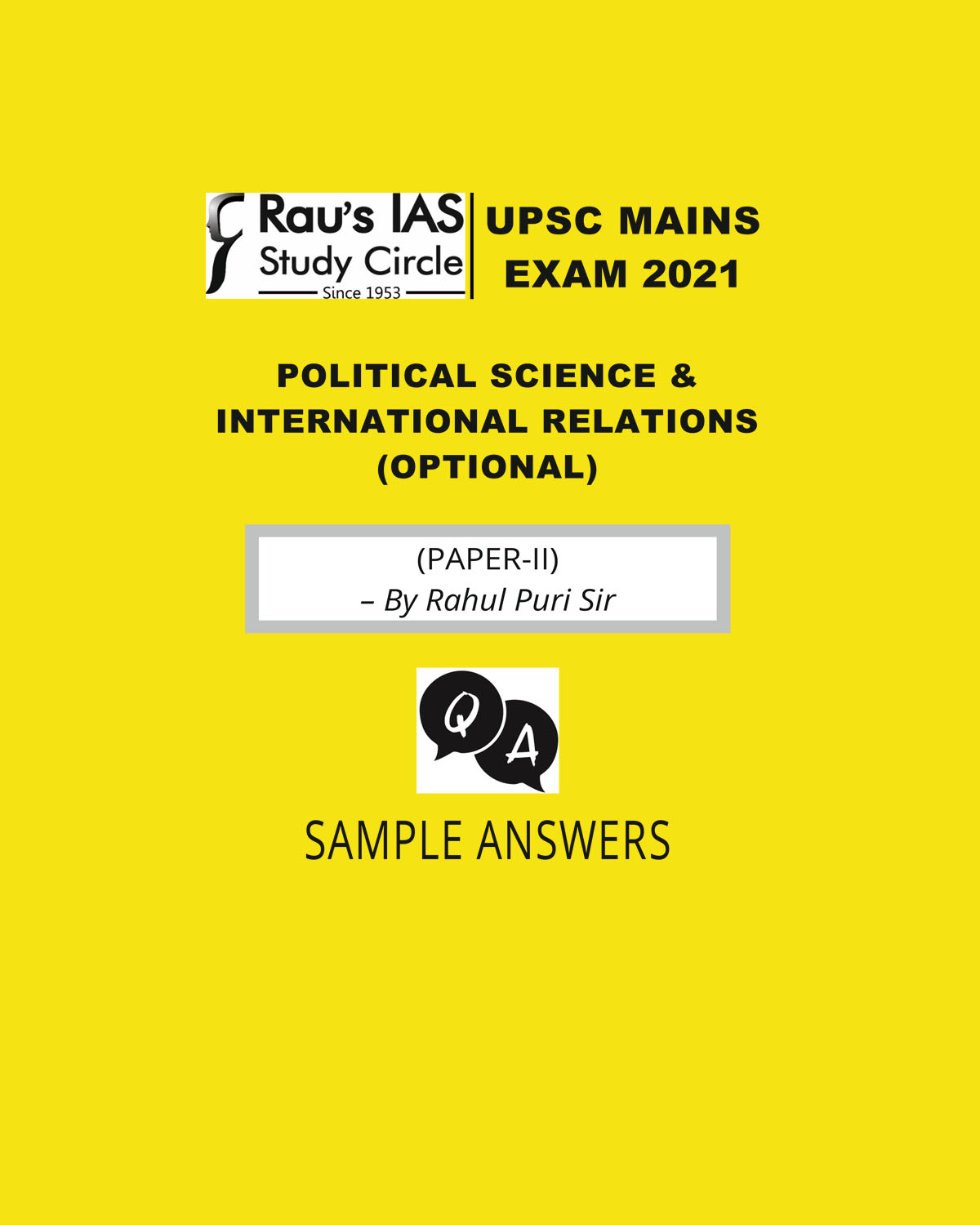 / RAU’S IAS UPSC MAINS EXAM 2021 POLITICAL SCIENCE & INTERNATIONAL RELATIONS (OPTIONAL)-PAPER-II-BY RAHUL PURI SIR (SAMPAL ANSWESR) (BLACK & WHITE)