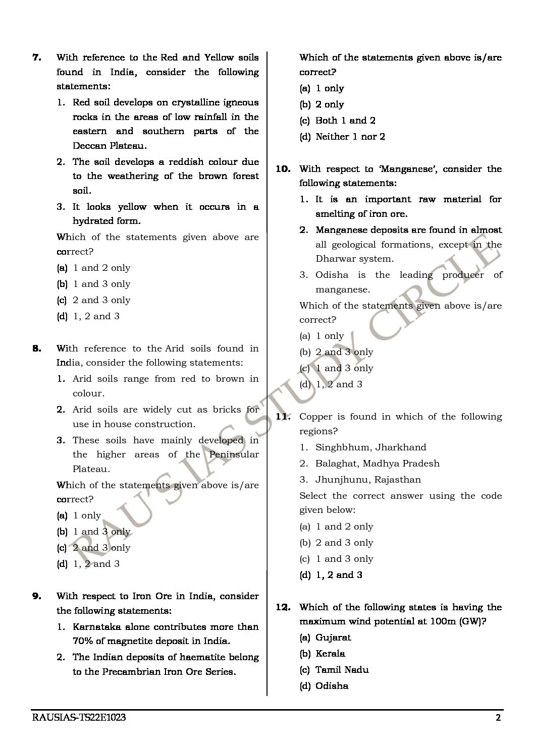 / RAU’S IAS PRELIMS 2022 TEST-23 (GENERAL STUDIES PAPER-1) INDIAN GEOGRAPHY -2 (BLACK & WHITE)