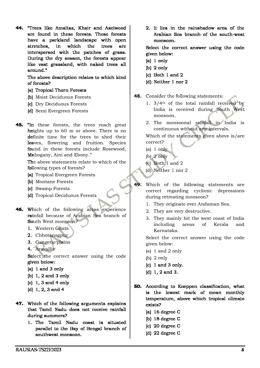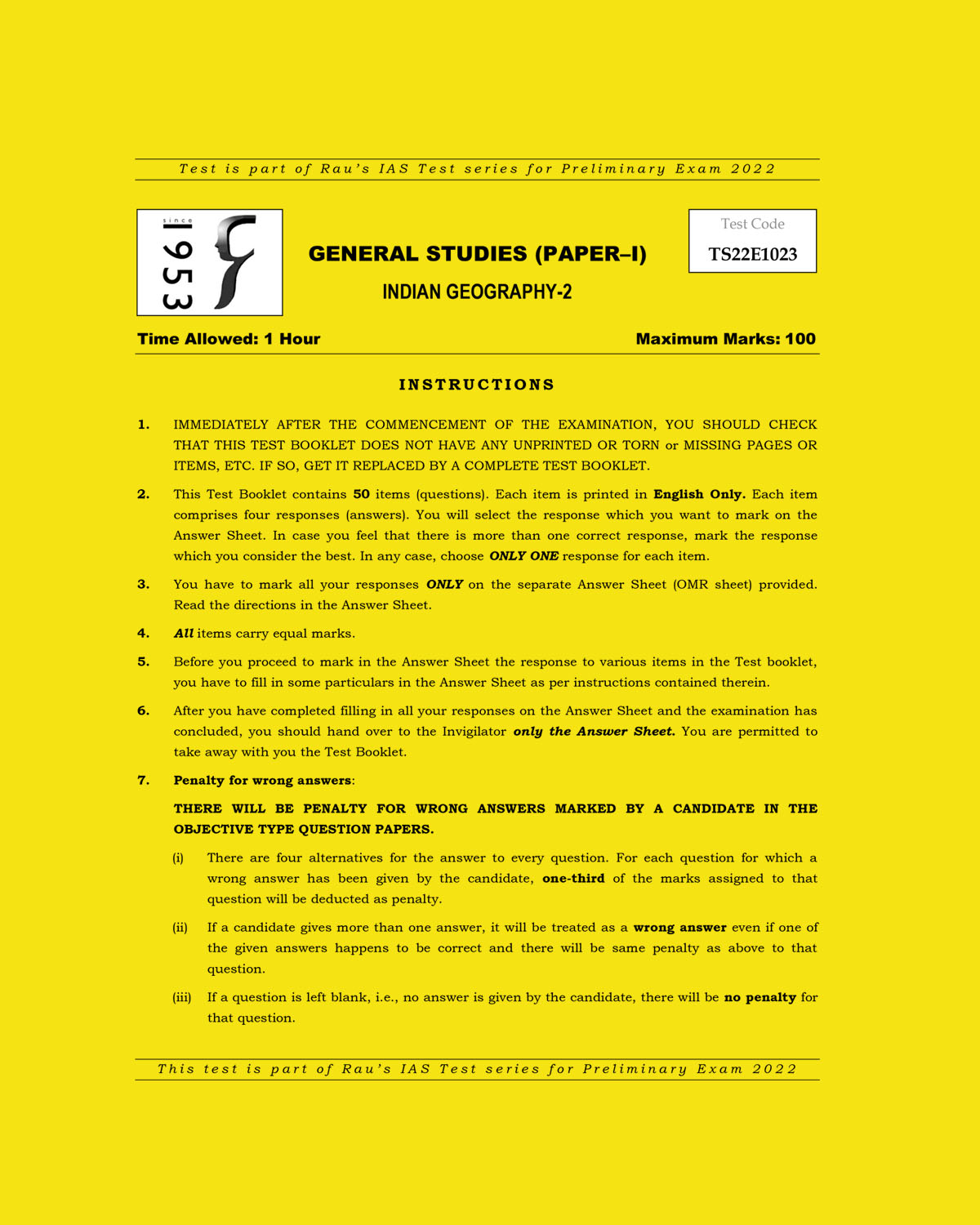 RAU’S IAS PRELIMS 2022 TEST-23 (GENERAL STUDIES PAPER-1) INDIAN GEOGRAPHY -2 (BLACK & WHITE)