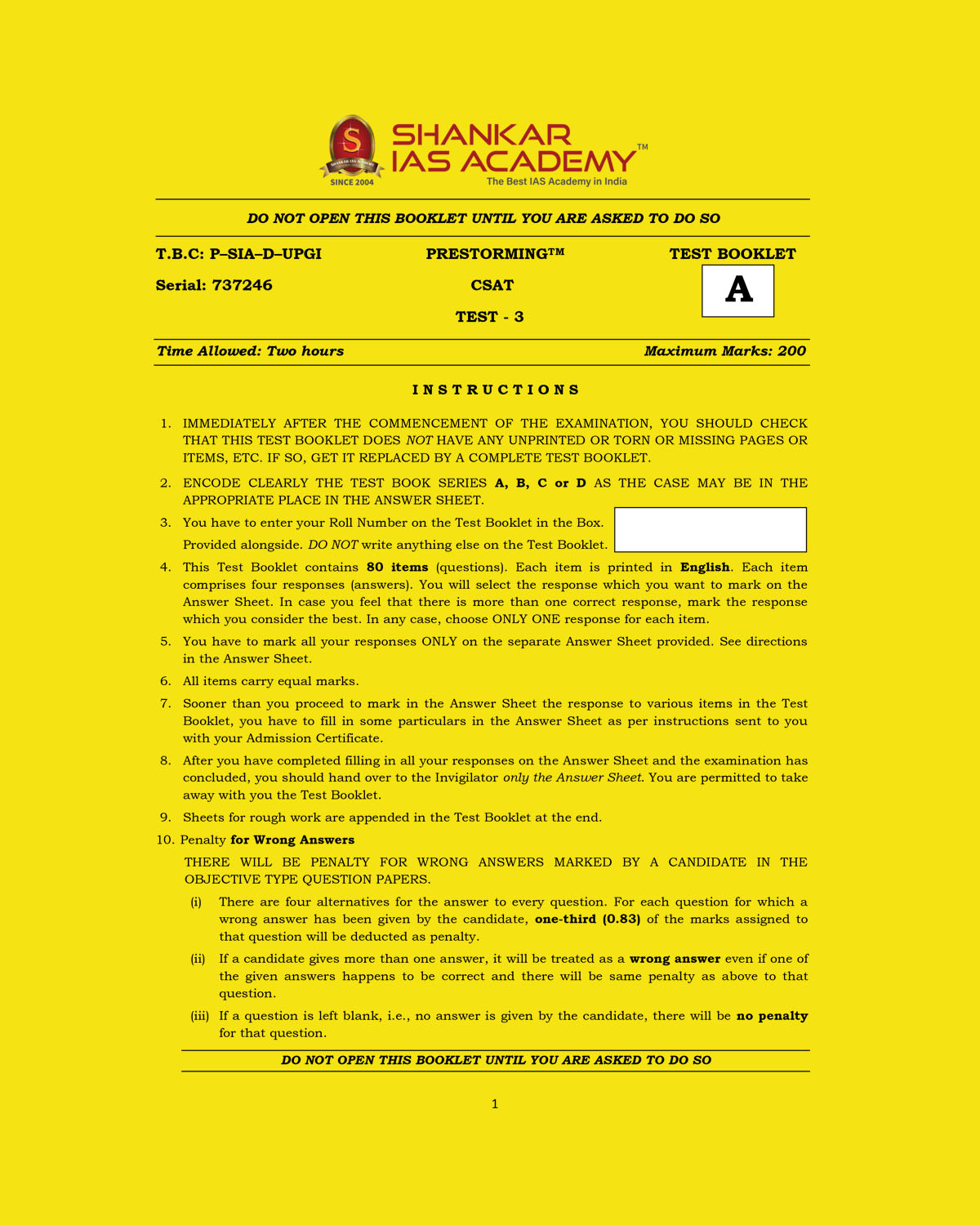 / SHANKAR IAS 2022 CSAT TEST-3 PRESTROMING 2022 (BLACK & WHITE)
