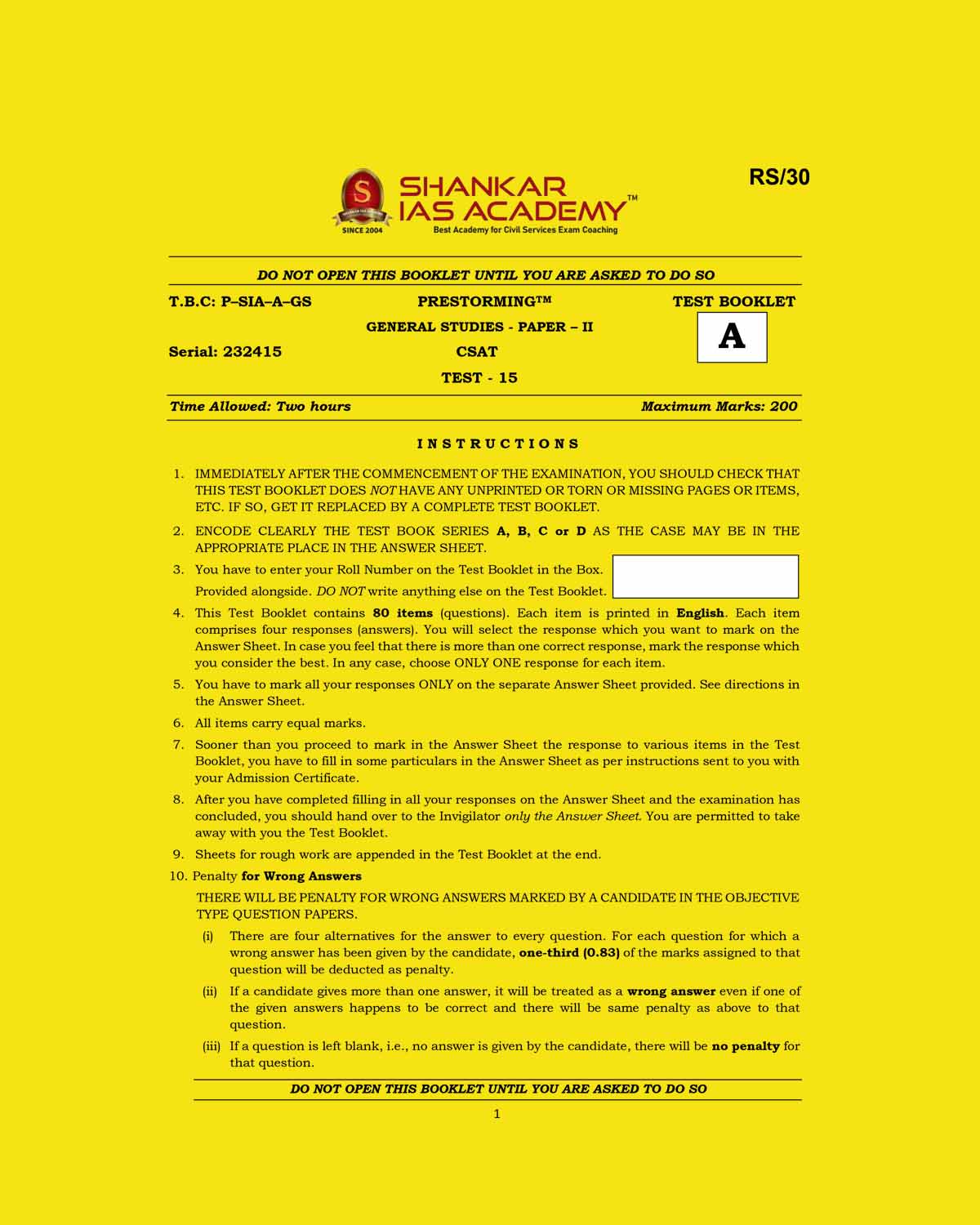 / SHANKAR IAS 2024 CSAT TEST-15 2024 FINAL {ENGLISH} {BLACK AND WHITE}