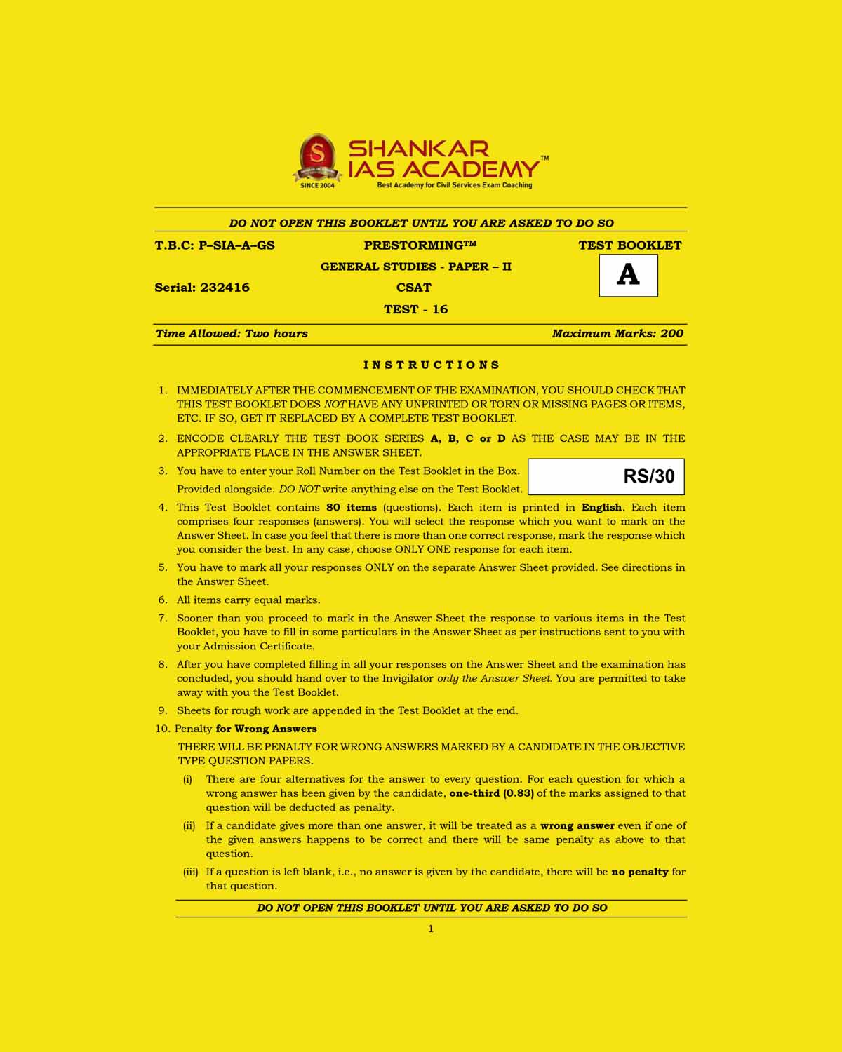 / SHANKAR IAS 2024 CSAT TEST-16 2024 FINAL {ENGLISH} {BLACK AND WHITE}