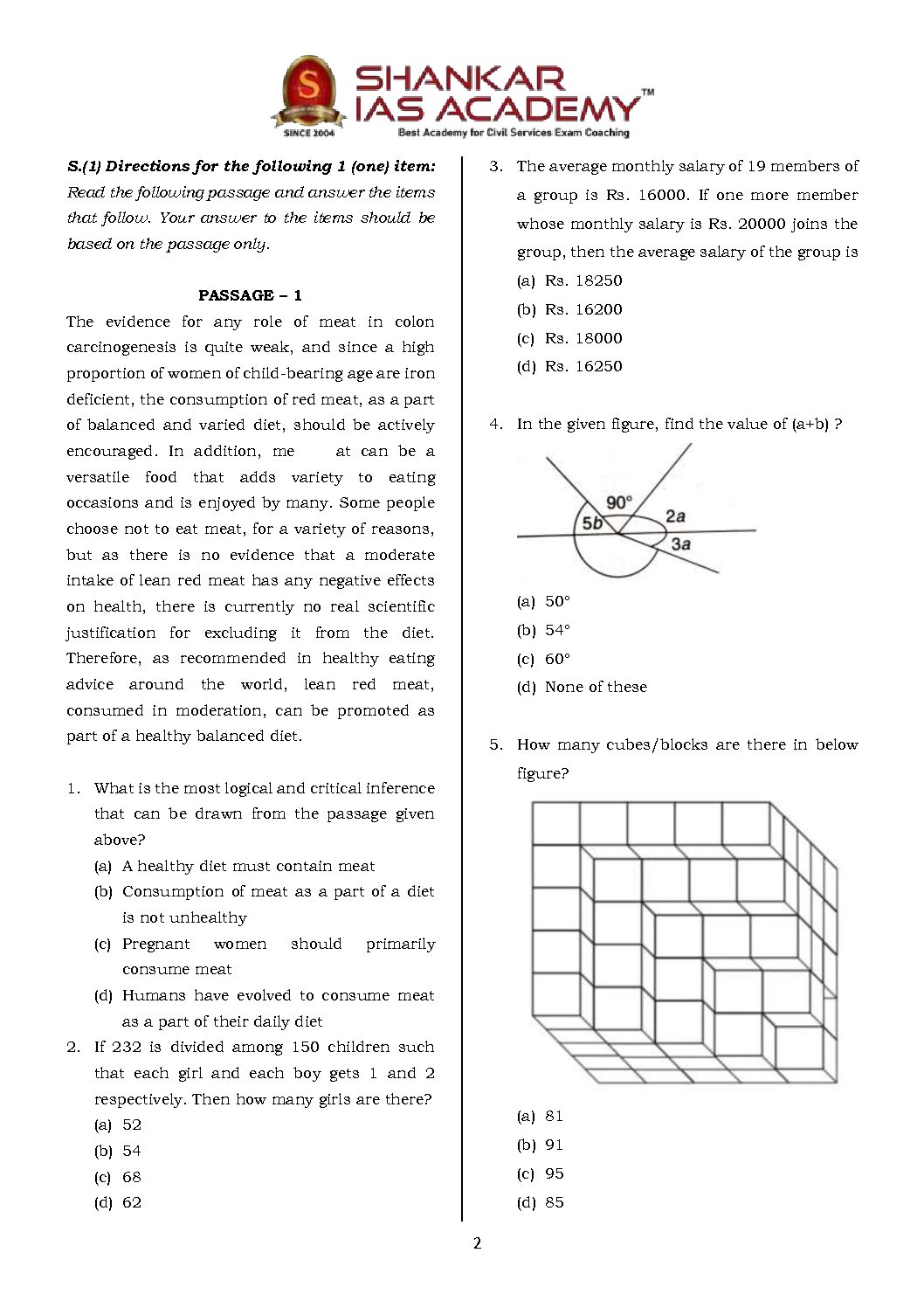 INISGHTS ONINDIA PT TEST-20 ( CSAT UNIT TEST-3) 2019