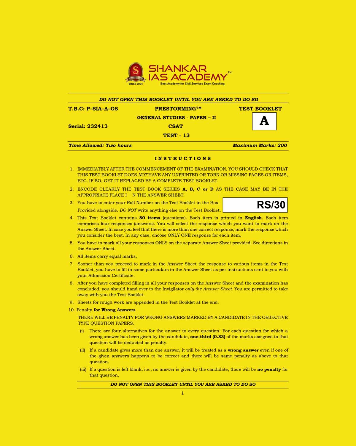 / SHANKAR IAS 2024 TEST-13 2024 FINAL ENGLISH {BLACK AND WHITE}