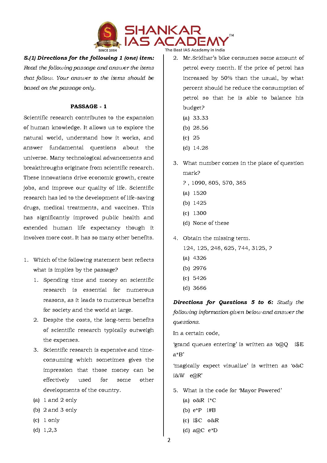 ALL INDIA MOCK CSAT ANUBHAV TEST