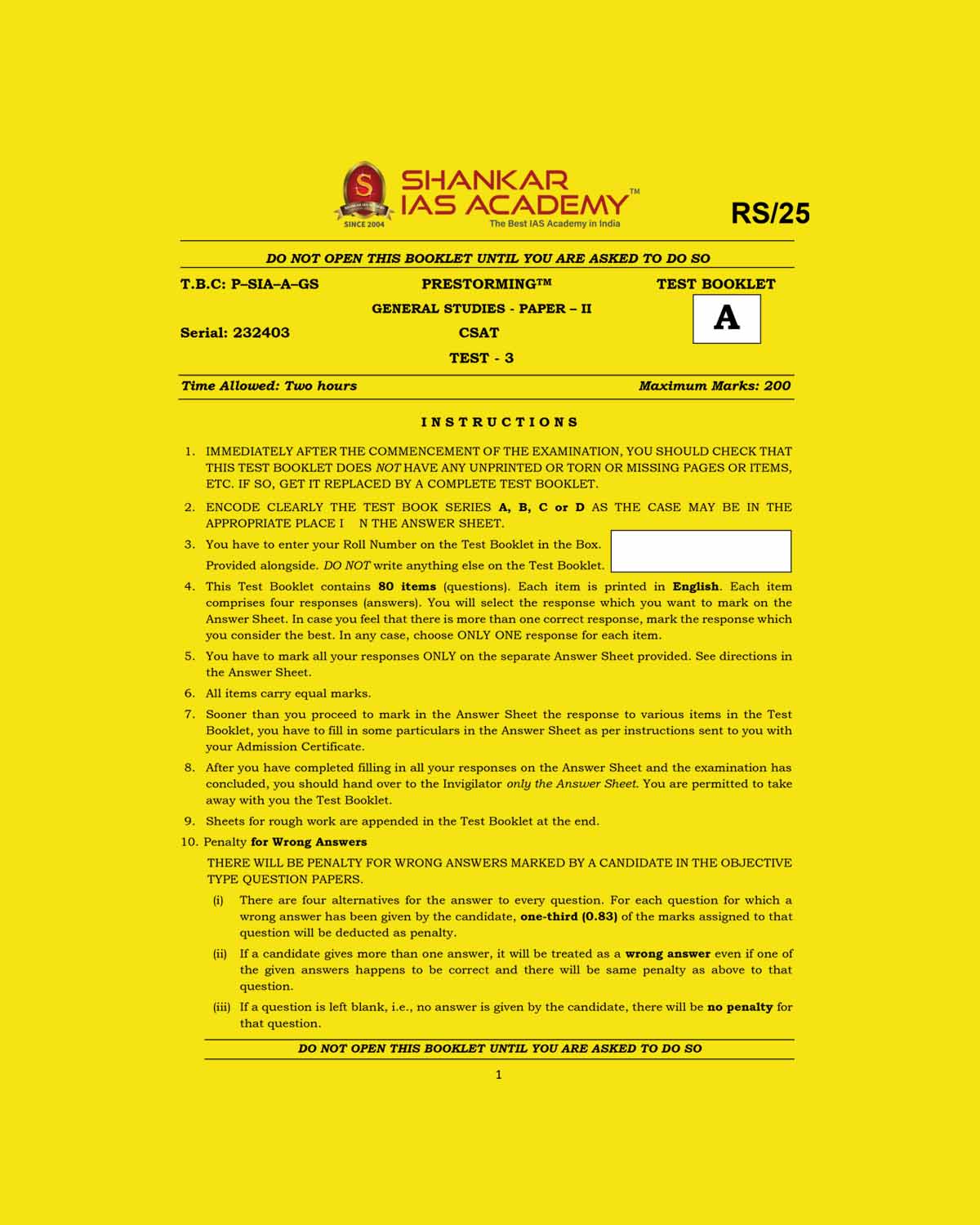 / SHANKAR IAS 2024 TEST-3 2024 FINAL {ENGLISH} {BLACK AND WHITE}