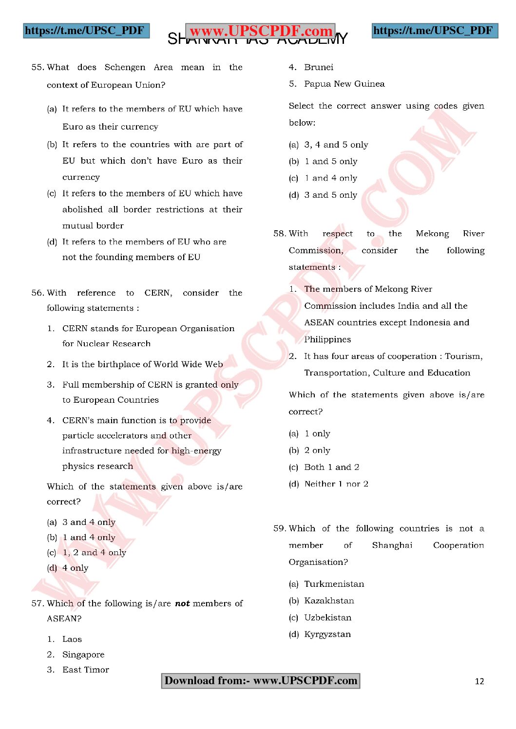 SHANKAR IAS PRELIMS TEST- 14 - SCIENCE INTERNATIONAL ORGANISATION - II TEST G.S PAPER - 1 - 2019 quantity