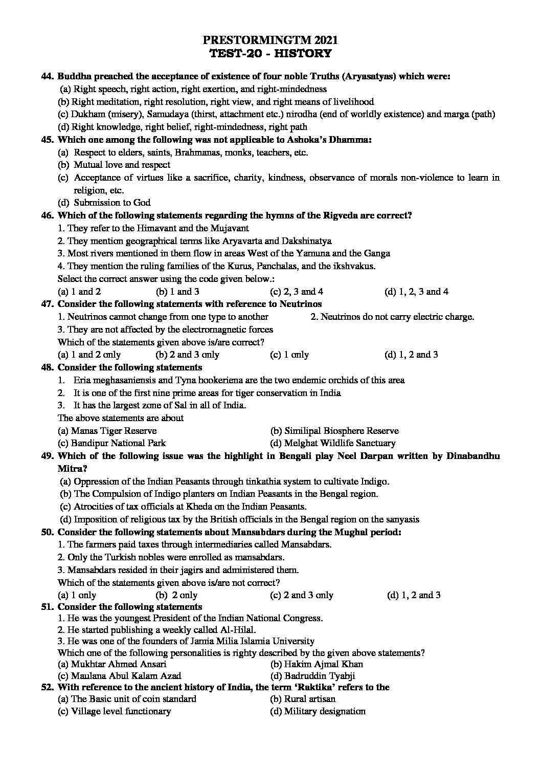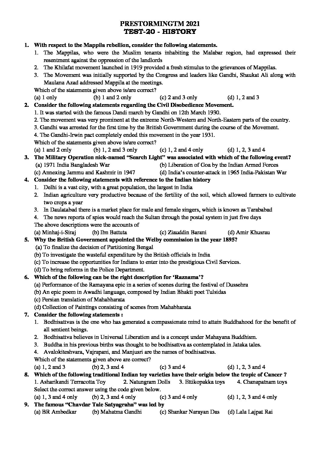 SHANKARIAS PT TEST 20 HISTORY (CURRENT- SYLLABUS) 2021