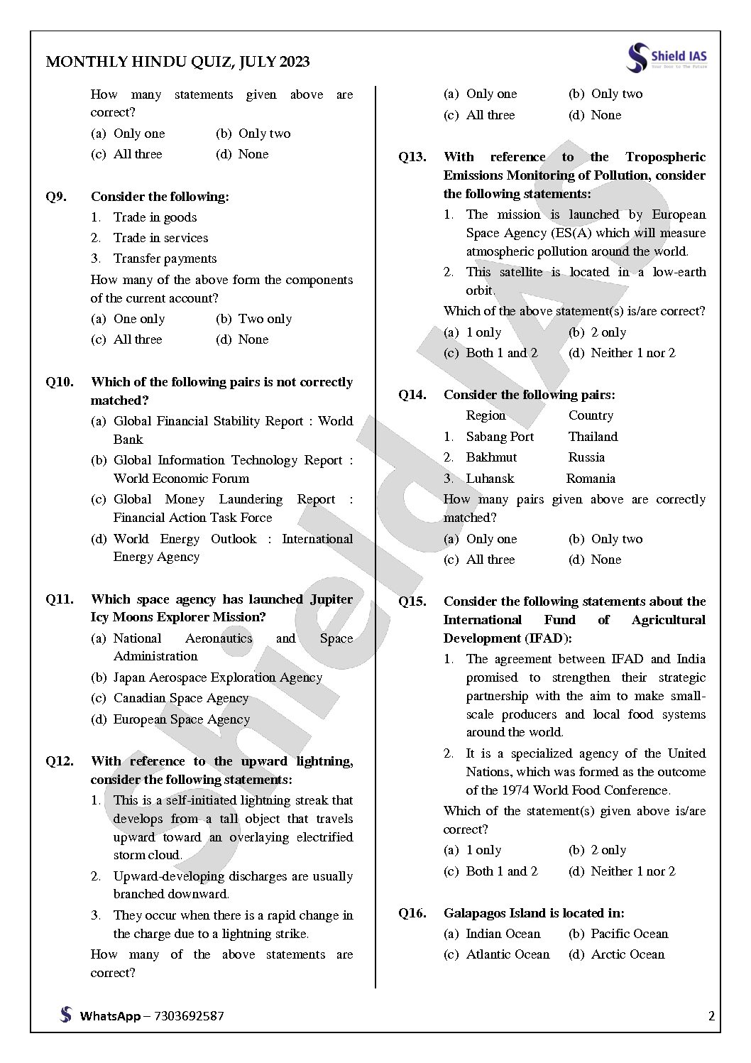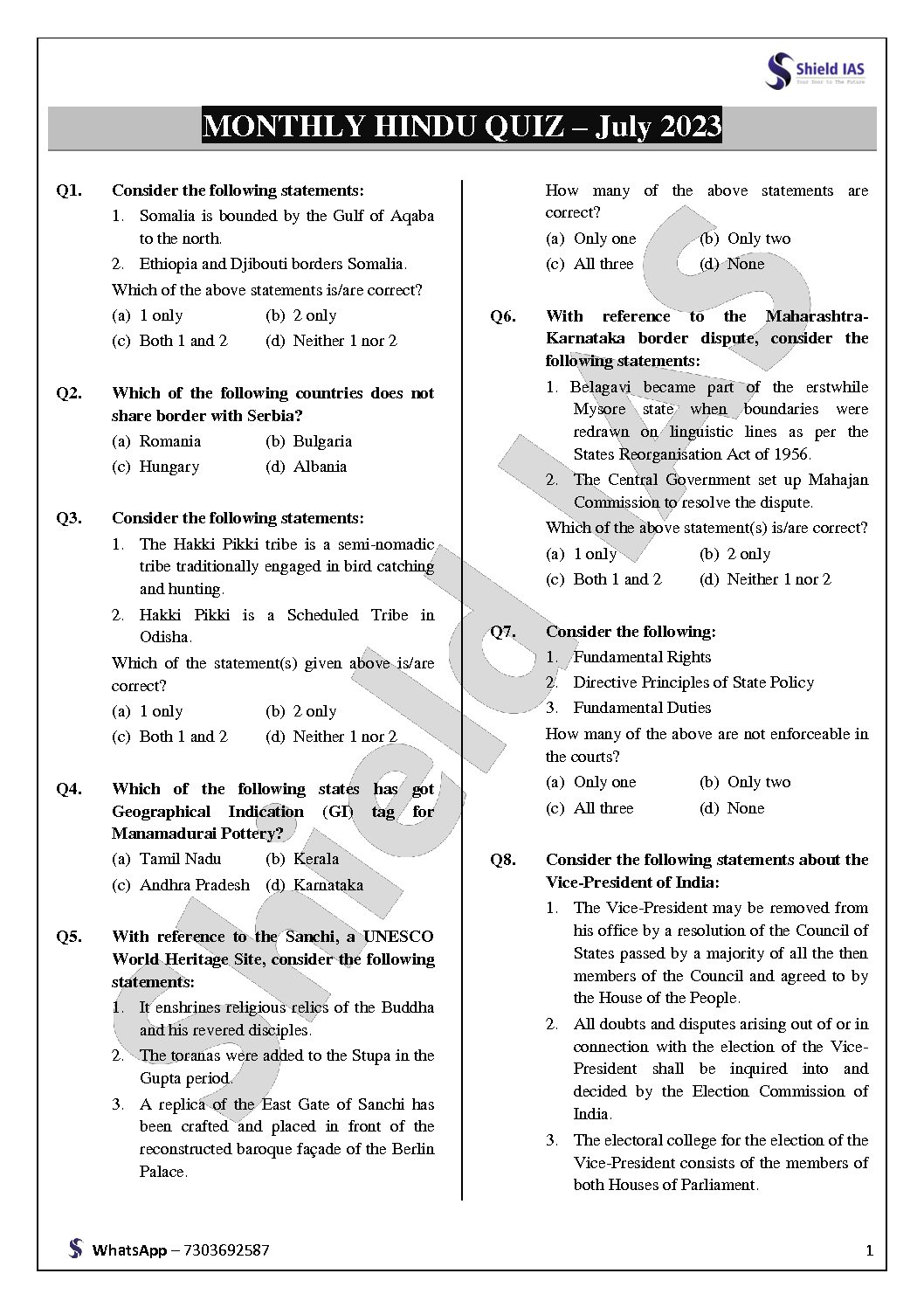 / SHIELD IAS THE HINDU MONTHLY QUIZ JULY 2023 FINAL {ENGLISH} {BLACK AND WHITE}