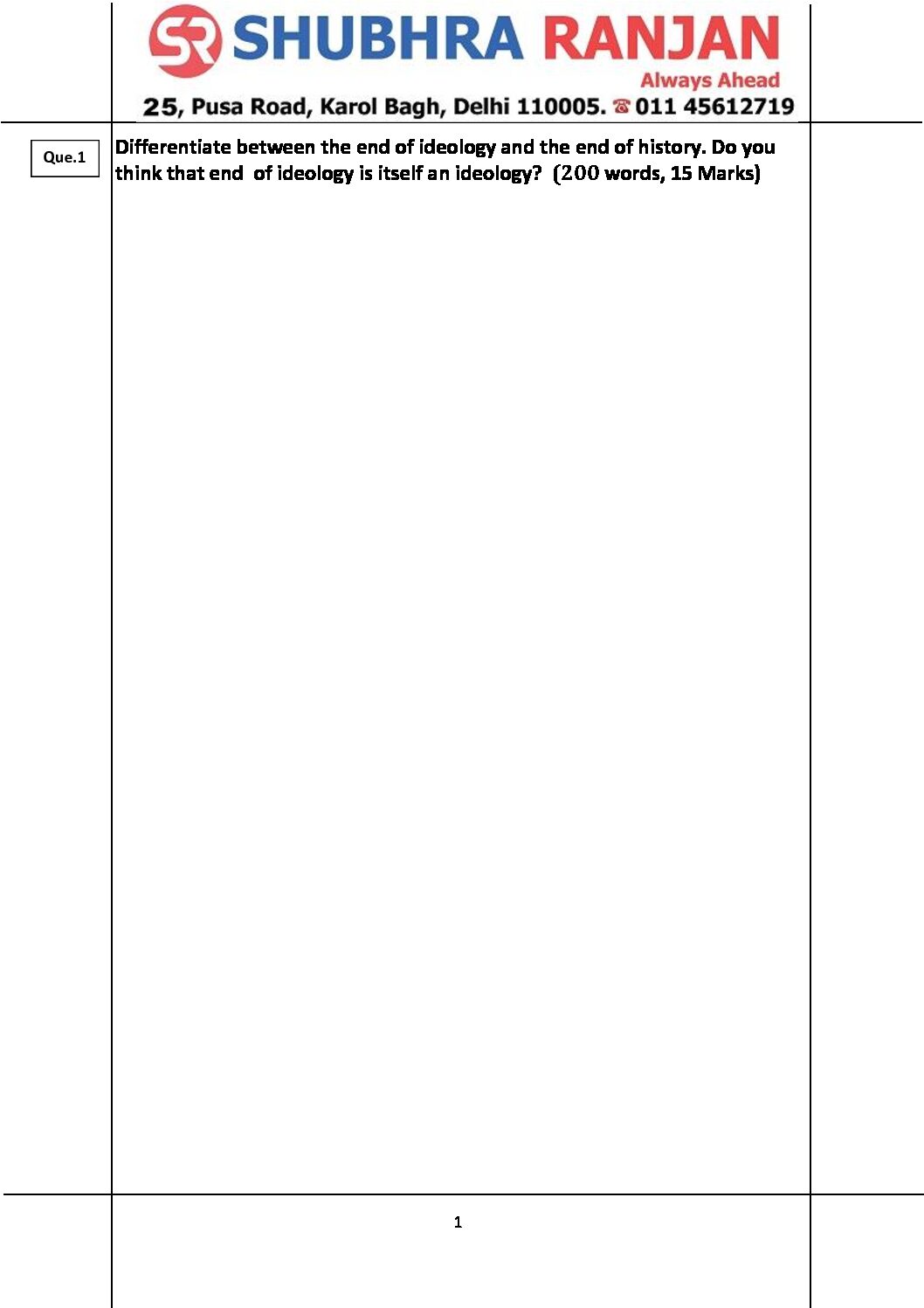 / SHUBHRA RANJAN 2023 QCA TEST-4 POLITICAL SCIENCE (PSIR ANSWERS WRITING MODULE 2023) (QUESTION-CUM-ANSWER) (BLACK & WHITE)