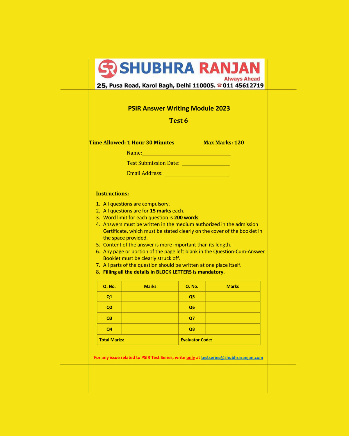 SHUBHRA RANJAN 2023 QCA TEST-6 POLITICAL SCIENCE (PSIR ANSWERS WRITING MODULE 2023) (QUESTION-CUM-ANSWER) (BLACK & WHITE)