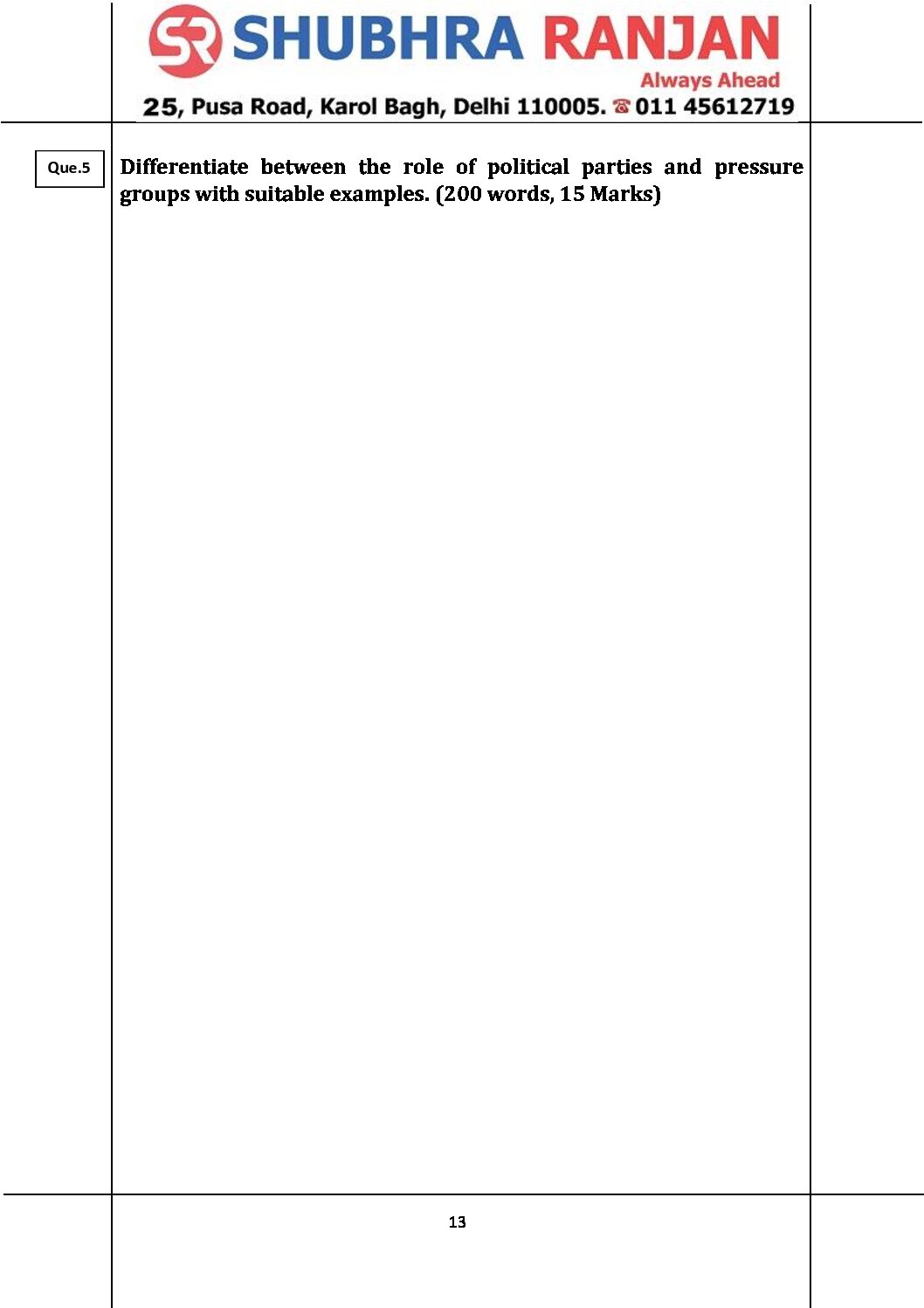 / SHUBHRA RANJAN POLITICAL SCIENCE TEST-12 2022 (QUESTION CUM ANSWER BOOKLET) (BLACK & WHITE)