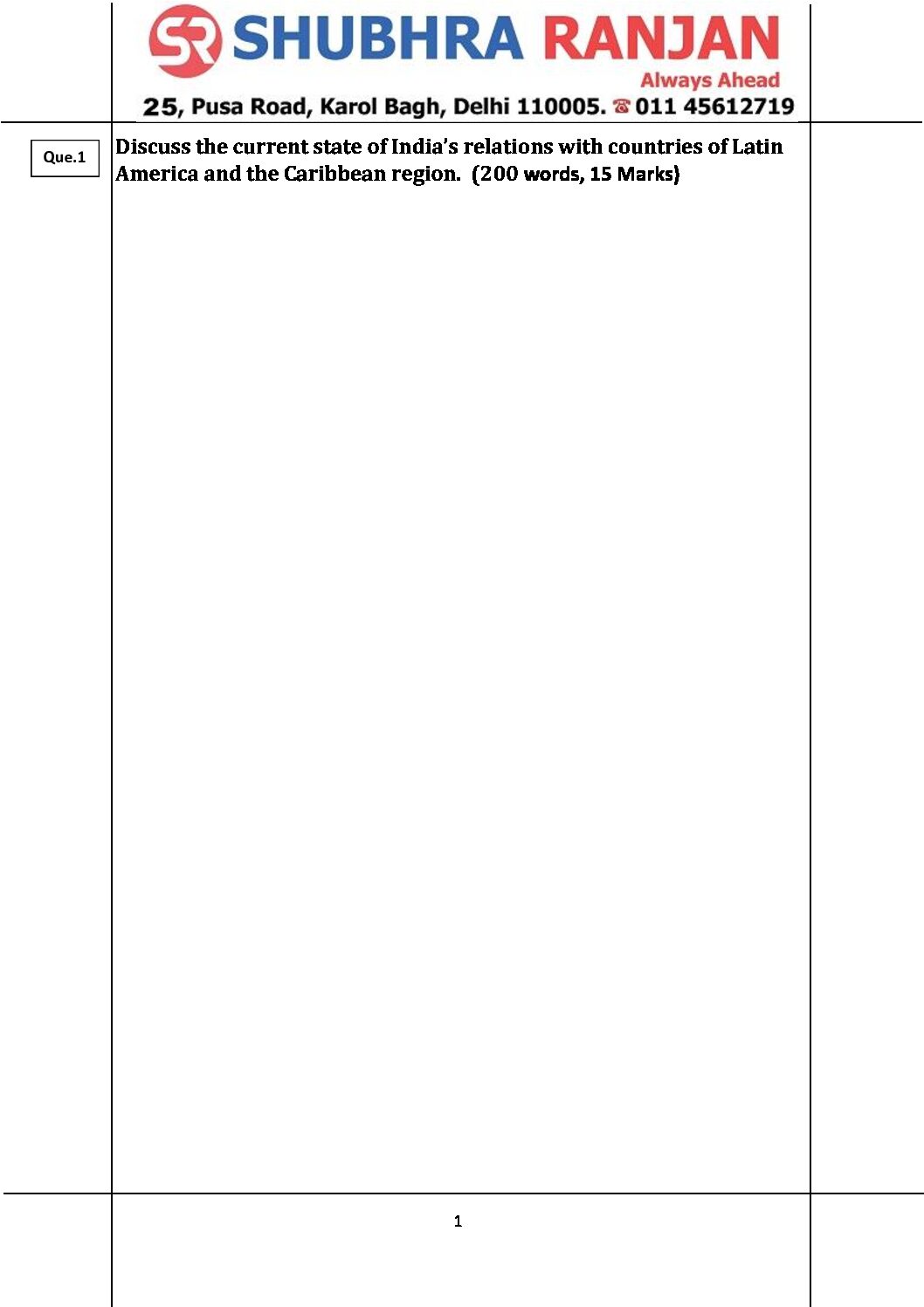 / SHUBHRA RANJAN POLITICAL SCIENCE TEST-15 2022 (QUESTION CUM ANSWER BOOKLET) (BLACK & WHITE)