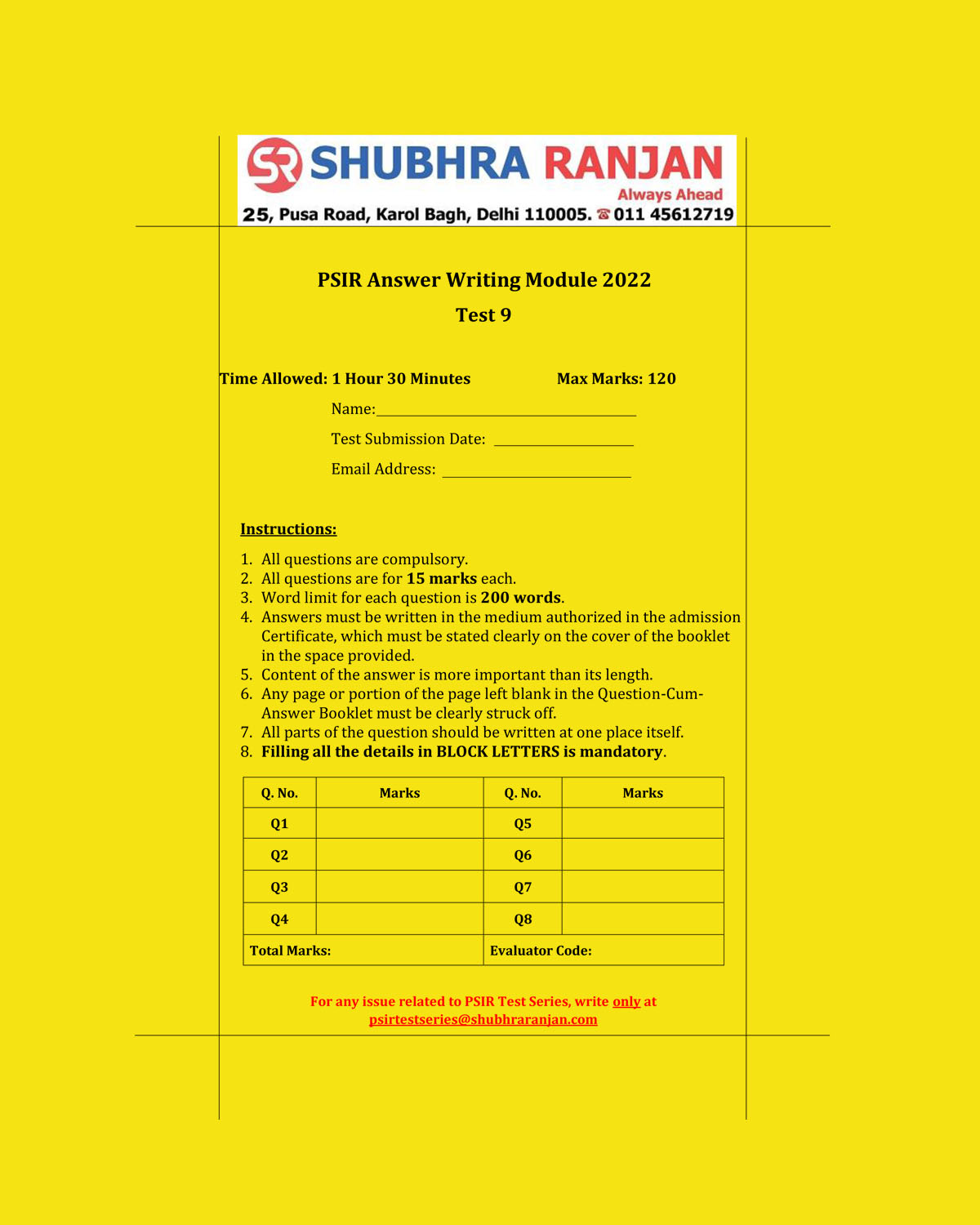 / SHUBHRA RANJAN POLITICAL SCIENCE TEST-09 2022 (QUESTION CUM ANSWER BOOKLET) (BLACK & WHITE)
