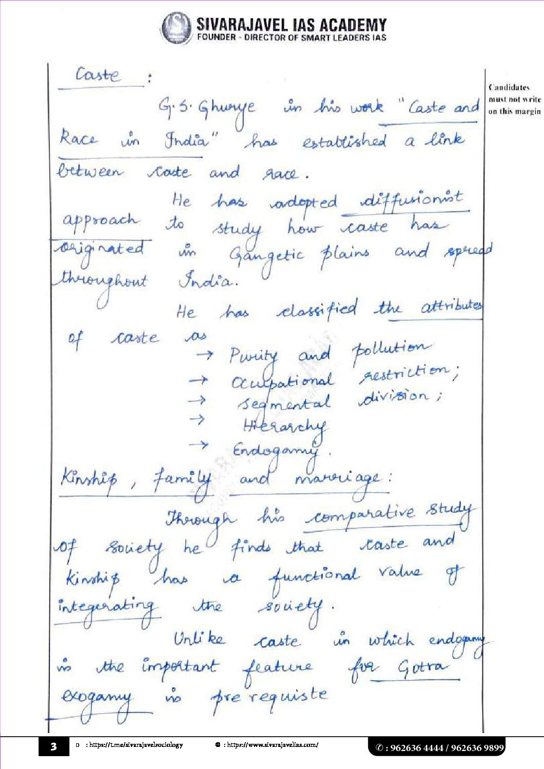 / SIVARAJAVEL IAS ACADEMY REVISE SOCIOLOGY QUESTION & ANSWERS HANDWRITTEN (PAPER-II) (BLACK & WHITE)