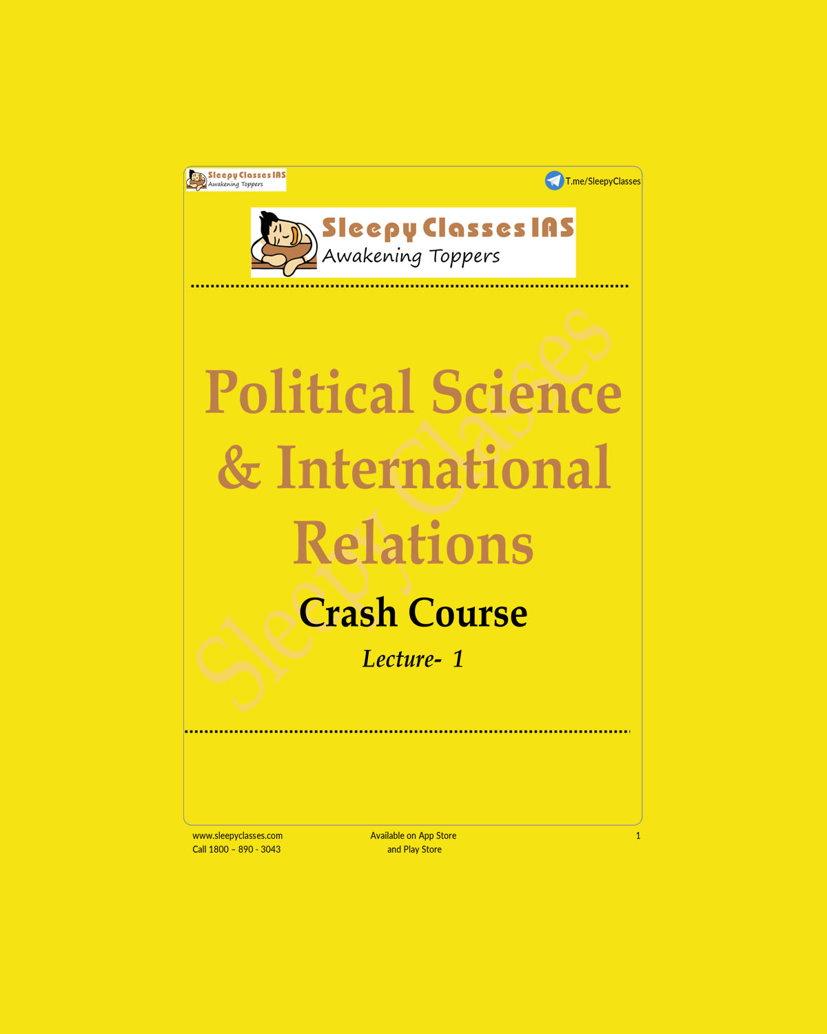 SLEEPY CLASSES POLITICAL SCIENCE & INTERNATIONAL RELATIONS CREASH COURSE LECTURE-1 (BLACK & WHITE)