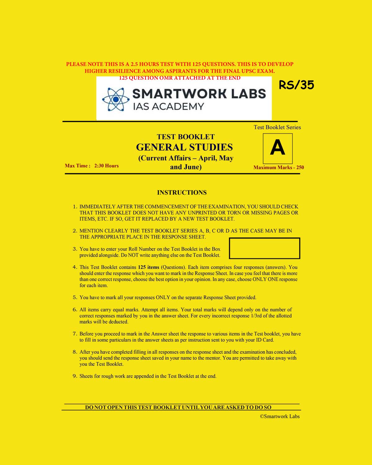 SMARTWORKS LABS IAS ACADEMY 2023 GS TEST-1 (CURRENT AFFAIRS APRIL, MAY JUNE) BLACK AND WHITE quantity