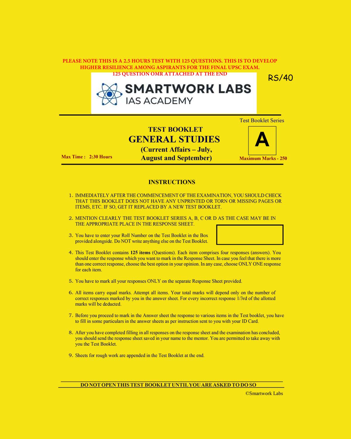 SMARTWORKS LABS IAS ACADEMY 2023 GS TEST-2 (CURRENT AFFAIRS JULY, AUGUST AND SEPTEMBER 2022) BLACK AND WHITE quantity